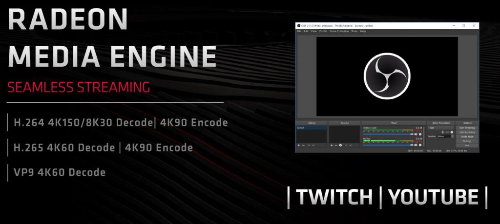 และสำหรับ RADEON Media Engine นั้นก็เป็นอีกหนึ่งความหวังของเหล่า Streamer ด้วยขุมพลังใหม่ที่สามารถ Decode H.264 ได้ถึงระดับ 4K150/8K30 กันเลยทีเดียวนะเออ… ส่วนทางด้าน Encode ก็สามารถใช้เป็นตัวปล่อย 4K90 ได้เลยนะครับ หุหุ… จะโหดไปไหน ส่วนทางด้าน H.265 ก็ไม่ธรรมดาเหมือนกัน ทางด้าน Decode ทำได้ 4K60 และทางด้าน Encode ก็สามารถทำได้ที่ 4K90 กันเลยทีเดียว… ส่วน VP9 ยอดฮิตสำหรับการปล่อยใน Youtube ก็สามารถปล่อยได้ถึง 4K60 กันเลยทีเดียวครับ ^^”