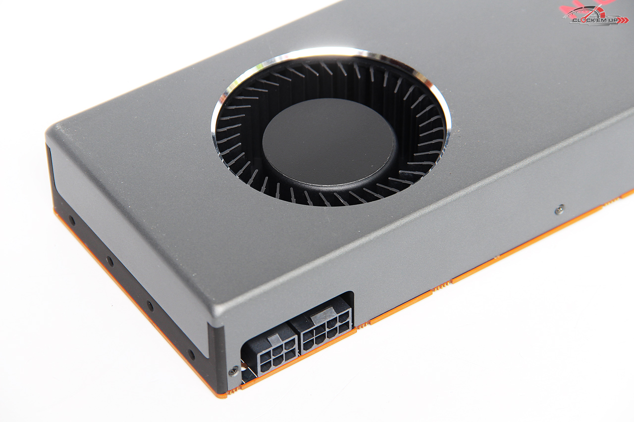 ตัวกราฟิกการ์ด AMD RADEON RX 5700 ตัวนี้จะมาพร้อมกับชุดระบายความร้อนสีเทา โดยตัวกรอบพัดลมจะทำจากอลูมิเนียมทั้งชิ้น การระบายอากาศยังคงเป็นพัดลม Blower เหมือนเดิมครับ
