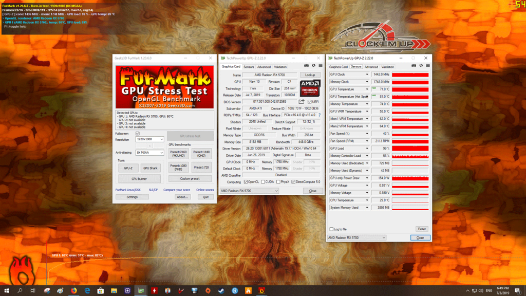 และในช่วง Stress test เป็นเวลาหลังจาก 7 นาที ก็พบว่าอุณหภูมิสูงสุดของการ์ด AMD RADEON RX 5700 ตัวนี้ก็อยู่ที่ 71c องศาเซลเซียสสูงสุดเท่านั้นเองครับ ถือว่าเย็นมากๆ สำหรับกราฟิกการ์ด 7nm. ตัวนี้จากทาง AMD ครับ