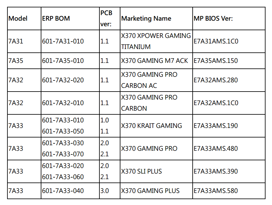 MSI ผู้นำด้าน Gaming Motherboard ได้เปิดให้อัพเดทไบออสตัวใหม่ในรุ่นX370, B350 และ A320 motherboards เพื่อให้รองรับ CPU AMD Ryzen Generation 2
