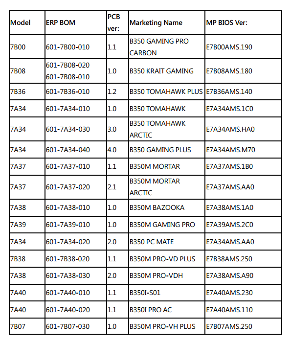 โดย BIOS เวอร์ชั่นใหม่ที่ใช้ไมโครโค๊ด AMD AGESA 1.1.0.1 สำหรับเมนบอร์ด MSI AMD ในปัจจุบัน ได้แก่ เมนบอร์ด X370, B350 และ A320 และเพิ่มยังเพิ่มประสิทธิภาพในการทำงานของ CPU ร่วมกับ Mainboard MSI