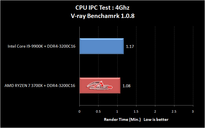 ต่อกันที่ Vray Benchmark 1.0.8 กันครับก็พบว่าที่ 4.0Ghz เท่ากัน 3700X ทำหน้าที่ Render ได้เร็วกว่าถึง 9 วินาทีเลยนะเออ…. แบบนี้ถ้าในอนาคต AMD สามารถวิ่ง 5.0Ghz+ ได้แบบ Intel นี่สนุกแน่นอนครัช… ^O^