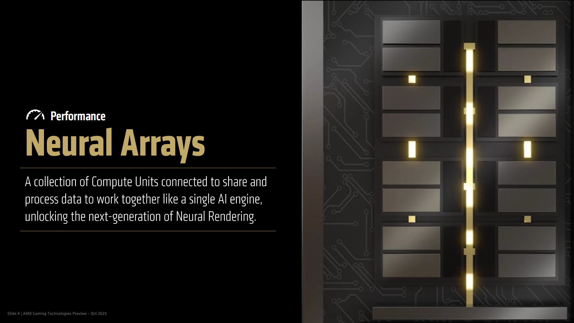 - Neural Arrays: กลุ่มของหน่วยประมวลผล (compute units) ที่ถูกกำหนดค่าให้สามารถแชร์และประมวลผลข้อมูลร่วมกัน เพื่อทำงานเสมือนเป็น AI Engine ขนาดใหญ่เพียงตัวเดียว