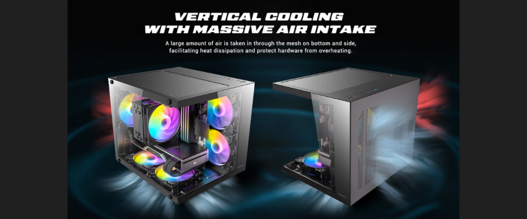 VCX20M RGB Elite (Mini-Tower) คือเคส Mini-Tower สำหรับคอมพิวเตอร์ขนาดเล็กที่เน้นทั้ง ดีไซน์และการระบายความร้อน ด้วย โครงสร้างแบบ Dual Chamber ที่แยกส่วนประกอบหลักออกจากกันเพื่อประสิทธิภาพสูงสุด มาพร้อม มุมมองพาโนรามา 270° จากกระจกไร้รอยต่อ และติดตั้ง พัดลม ARGB 120 มม. มาให้ล่วงหน้าถึง 5 ตัว พร้อมรองรับการ์ดจอได้ยาวสูงสุดถึง 320 มม. ราคาเปิดตัว 990 บาท รับประกันสินค้า 1 ปี