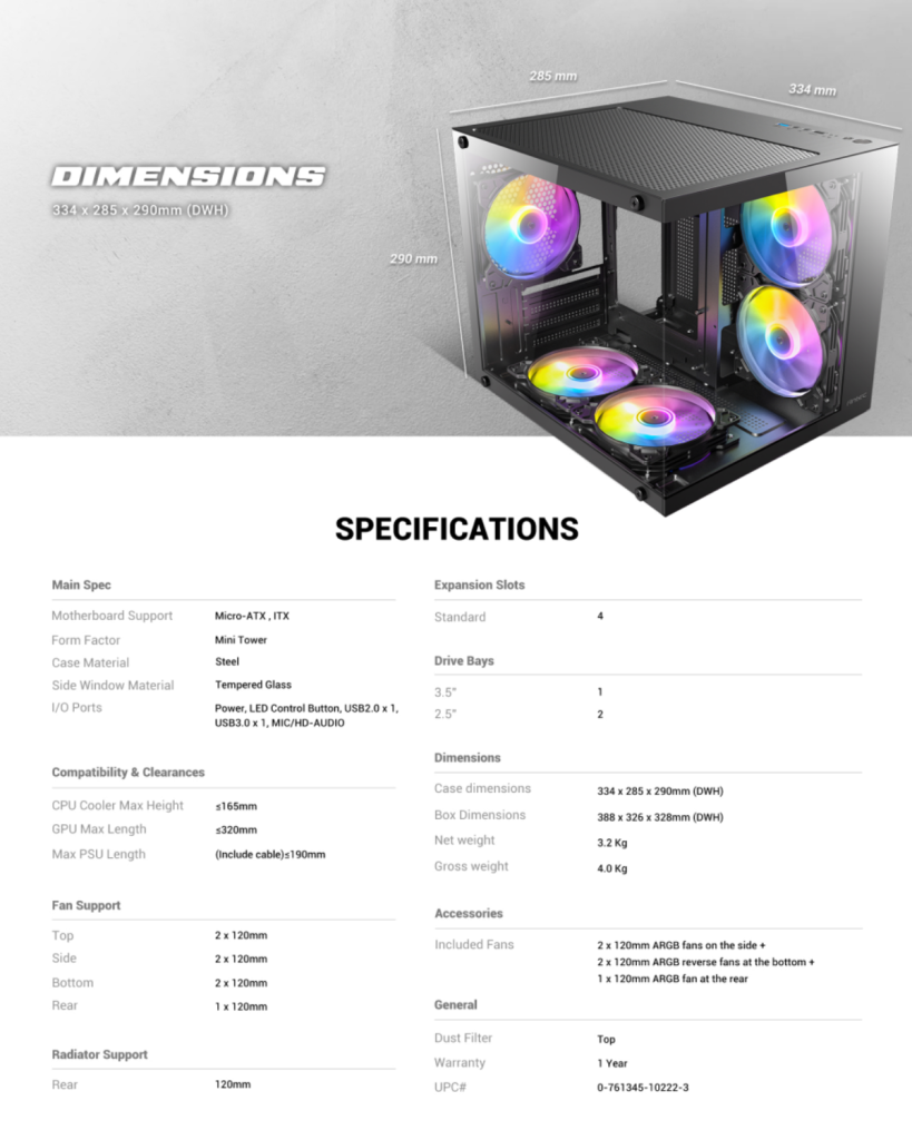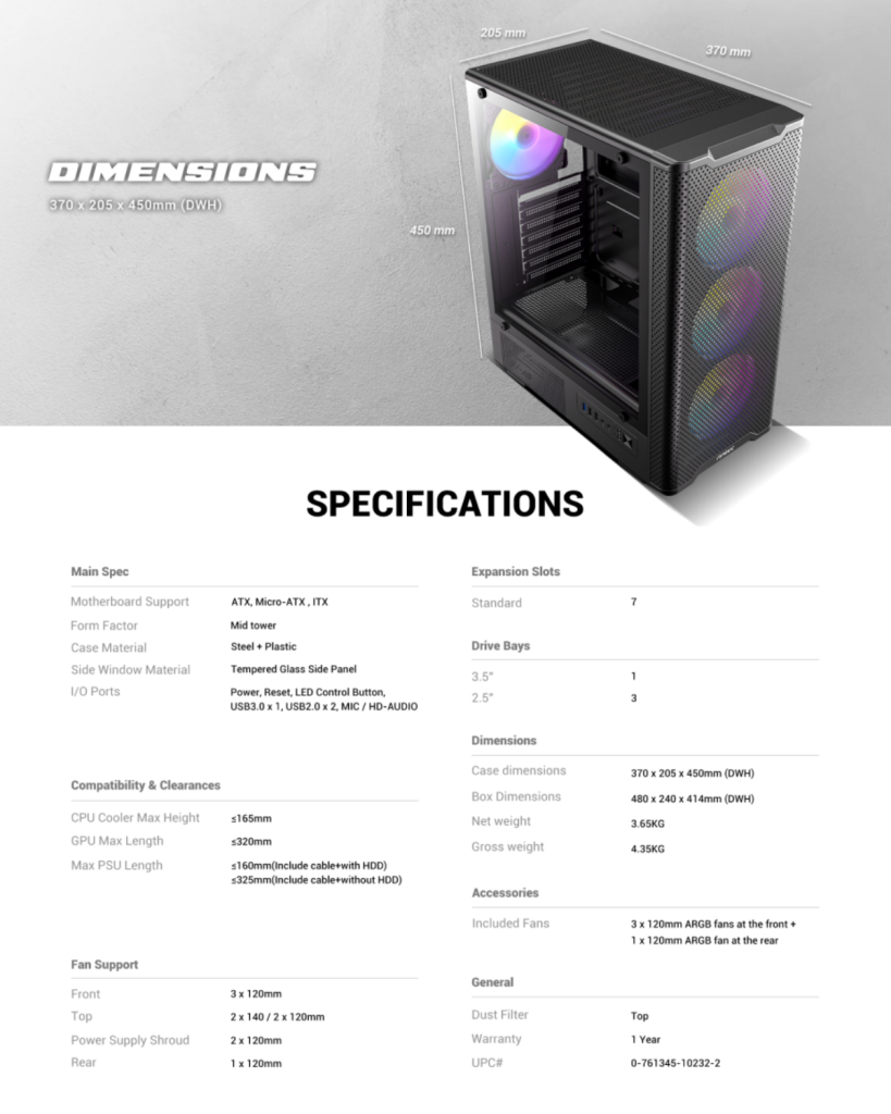 รายละเอียดสเปค / ขนาดเคสของ Antec VX310 ARGB และ VCX20M RGB ELITE
