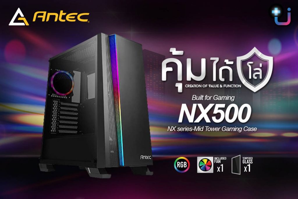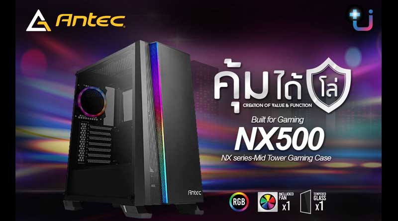 Antec เปิดตัวเคสสุดคุ้มรุ่นใหม่ล่าสุด Antec NX500 ราคา 1,590 บาท เป็นอีกหนึ่งทางเลือกในรุ่นสุดคุ้มจาก Antec NX Series ที่กำลังเปิดตัวนำเข้ามาจัดจำหน่ายในประเทศไทย โดย Antec NX500 เป็นเคสสไตล์ Gaming Case ขนาด Mid Tower ที่ผลิตขึ้นเพื่อมุ่งเน้นความคุ้มค่าและมีฟังก์ชั่นการใช้งานและรองรับอุปกรณ์ชุดระบายความร้อนที่ครบครันตอบโจทย์เกมเมอร์ที่หลงรัก แสง สี แบบจัดเต็ม ที่ด้านหน้าตัวเคสมีไฟ ARGB / ด้านหลังติดตั้งพัดลม ARGB ขนาด 120mm พร้อมปุ่มปรับสีไฟ ARGB และ มีสายเชื่อมต่อ 3-pin ARGB รองรับ Motherboard Sync ใช้ในการปรับสีไฟได้ถึง 16.8 ล้านเฉดสี ด้านข้างเป็นกระจก Tempered Glass มีช่องปิดกั้น PSU Cover ทำให้จัดเก็บสายได้อย่างเรียบร้อยสวยงามด้านหน้ารองรับการติดตั้งชุดระบายความร้อนด้วยน้ำ ติดตั้งหม้อน้ำขนาด 120mm/240mm/360mm จัดเต็มทุกฟังก์ชัน ราคาสบายกระเป๋า คุ้มได้โล่ !