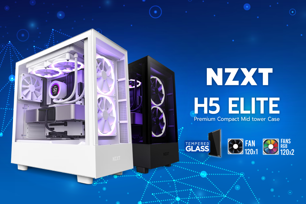 สำหรับใครที่ชื่นชอบคอนเซปของ NZXT ที่คงความเรียบหรูดูแพง พลาดไม่ได้กับเคสรุ่นใหม่อย่าง H5 Series ซึ่งเป็นซีรีย์ใหม่ล่าสุดของ NZXT โดยเปิดตัวมาด้วยกัน 2 โมเดล คือ H5 Elite และ H5 Flow ซึ่งเป็นเคสขนาด Mid-tower สามารถระบายความร้อนได้ดีเยียม มี 2 สี คือ สีดำ และสีขาว