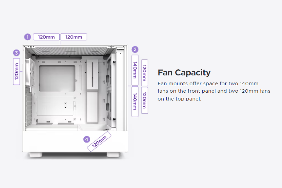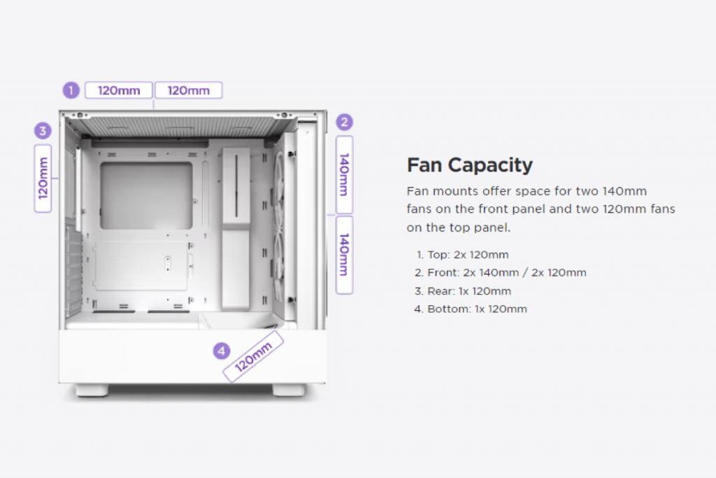 | Front | 2 x 120mm / 2 x 140mm