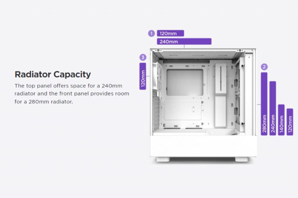 H5 Series ผลิตจากเหล็กที่มีความแข็งแรง ด้วยการออกแบบที่เรียบหรูตามสไตล์ NZXT มาพร้อมฟังก์ชั่นจัดเต็ม รองรับการติดตั้งพัดลมทั้งหมดสูงสุด 6 ตัว ฝาข้างเป็นกระจก Tempered Glass เต็มบาน สามารถโชว์อุปกรณ์ภายในได้อย่างสวยงาม