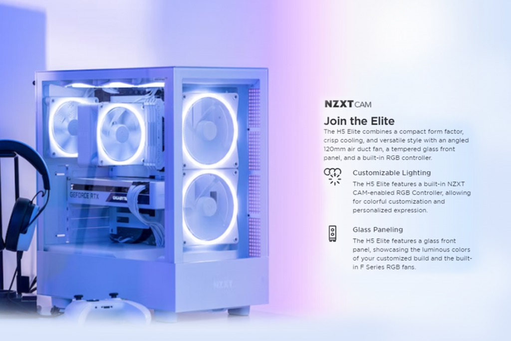 โดยรุ่น H5 Elite จะมีคอนโทรลเลอร์ RGB สามารถเปิดใช้ NZXT CAM เพื่อปรับแต่งไฟได้ตามสไตล์ของคุณและแผงกระจกด้านหน้า สามารถทำให้การแสดงสีของพัดลมสวยงามยิ่งขึ้น