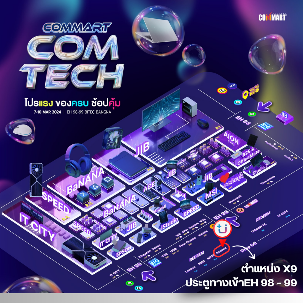 เตรียมตัวให้พร้อมแล้วมาเจอกันที่งาน COMMART COMTECH ระหว่างวันที่ 7 – 10 มีนาคม 2567 เปิดเวลา10.00 – 21.00 น. ประตูทางเข้าEH 98 – 99 ศูนย์นิทรรศการ และการประชุมไบเทคบางนาเข้าฟรีตลอดทั้งงาน