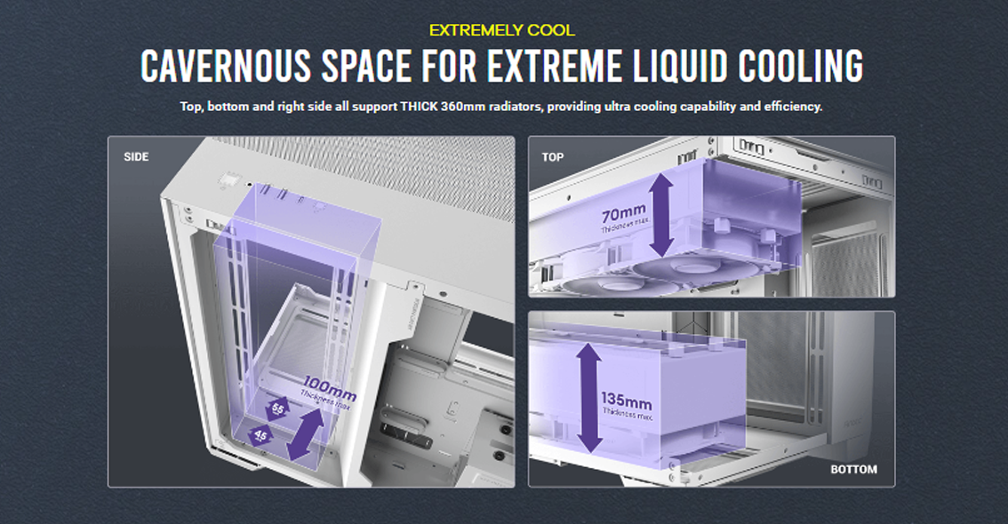 CAVERNOUS SPACE FOR EXTREME LIQUID COOLING เพิ่มพื้นที่การติดตั้งชุดระบายความร้อนด้วยน้ำให้กว้างขึ้นพิเศษ เพื่อให้การระบายความร้อนมีประสิทธิภาพ