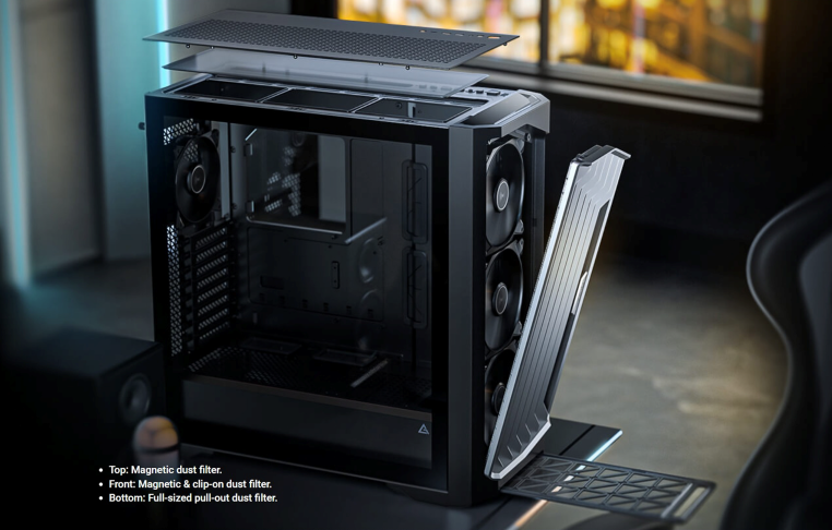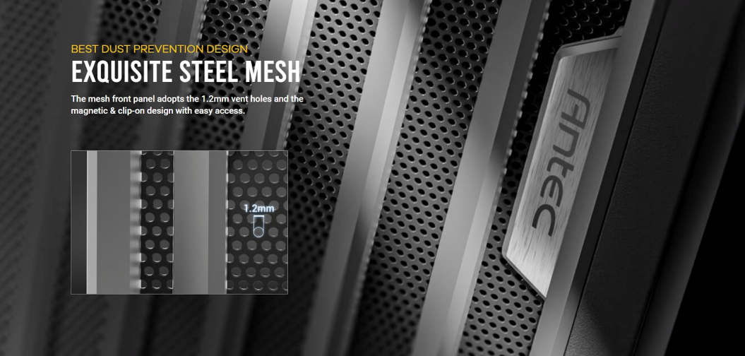 EXQUISITE STEEL MESH การออกแบบป้องกันฝุ่นด้วยตาข่ายเหล็กประณีต เป็นตาข่ายใช้รูระบายอากาศขนาด 1.2mm และการออกแบบแม่เหล็ก และ Clip-on สามารถถอดเข้า-ออกได้ง่าย
