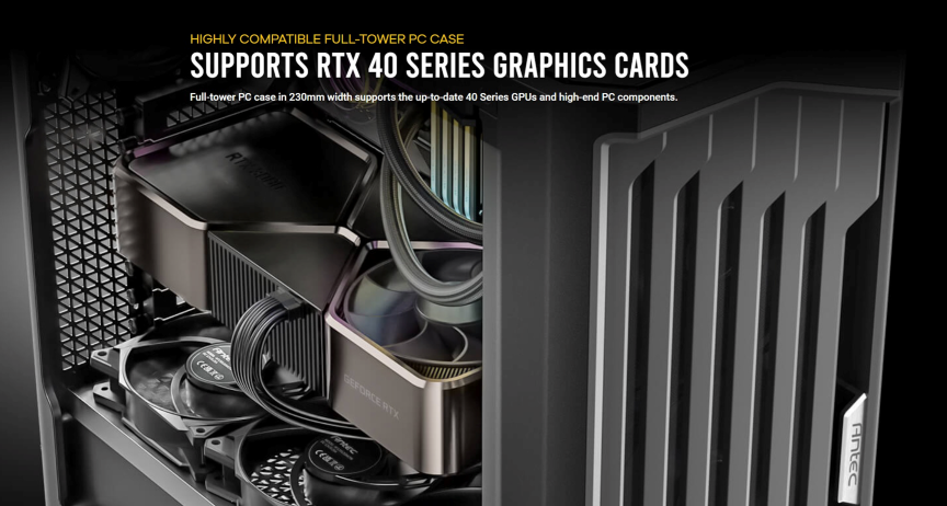 Antec PERFORMANCE 1 FT เคสขนาด Full-Tower รองรับการติดตั้งการ์ดจอ ที่มีความกว้าง 230 – 400mm รองรับการติดตั้งการ์ดจอรุ่นใหม่อย่าง RTX 40 SERIES