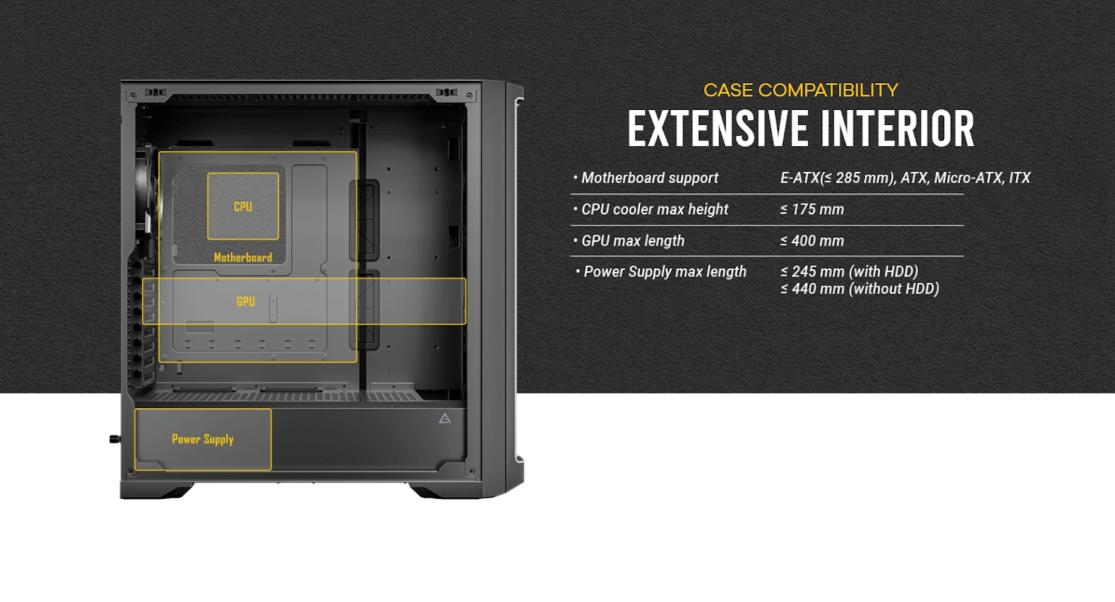 - รองรับการติดตั้ง CPU Cooler ได้สูงสุด 175mm