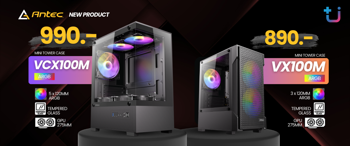 บริษัท เอสเซนตี้ รีซอร์สเซส จำกัด ในฐานะผู้นำเข้าและจัดจำหน่ายผลิตภัณฑ์แบรนด์ Antec เกี่ยวกับสินค้า Case Cooling และ Power Supply ชั้นนำของประเทศไทย คุ้มค่าเกินต้าน! Ascenti เปิดตัว ANTEC VX100M และ VCX100M ARGB สองเคสใหม่สไตล์มินิมอล พร้อมพัดลมจัดเต็มในราคาสุดว้าว