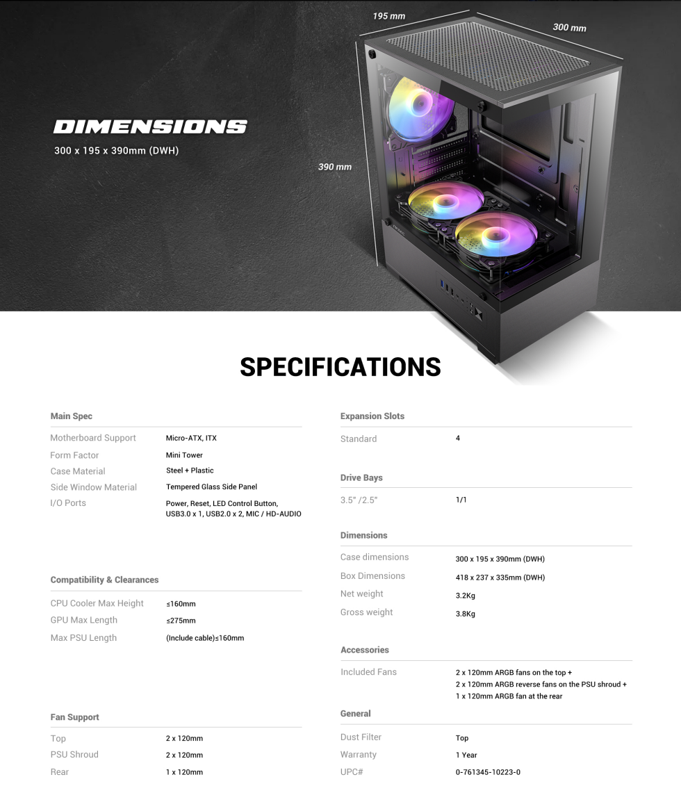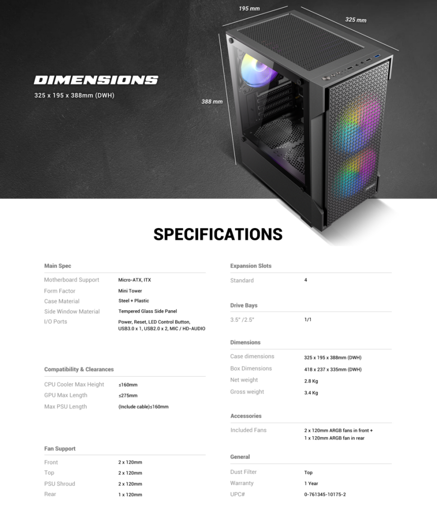 รายละเอียดสเปค / ขนาดเคสของ ANTEC VCX100 ARGB และ VCX100M ARGB