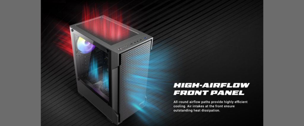 VX100M ARGB ยกระดับการระบายความร้อนด้วยแผงหน้ากากดีไซน์ High-Airflow ที่เปิดรับอากาศเข้าสู่ระบบได้อย่างเต็มพิกัดจากช่องทางเดินอากาศรอบทิศทาง ช่วยให้การถ่ายเทและกระจายความร้อนภายในทำได้อย่างรวดเร็วและมีประสิทธิภาพสูงสุด