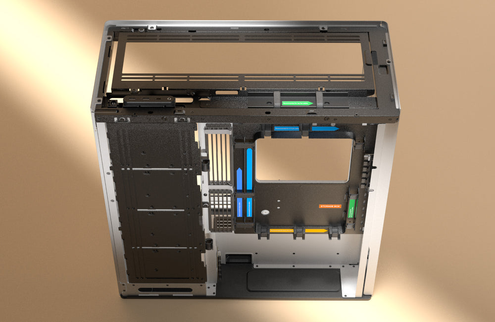 Unique SimpliCable Routing System : SimpliCable เป็นการออกแบบร่องและรางคลิปเลื่อน ทำให้สามารถจัดการสายไฟได้ตรงเป็นระเบียบอย่างง่ายดาย รายละเอียดเล็กน้อยแต่สามารถสร้างความเพอร์เฟคให้เคสคอมพิวเตอร์ได้อย่างลงตัว