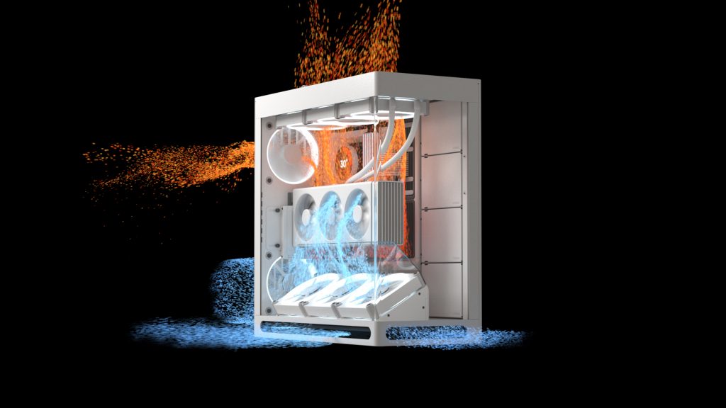 Mirrored Airflow : ช่องติดตั้งพัดลมพิเศษช่วงด้านล่างของแผงหลังเคส เพื่อช่วยนำอากาศเย็นเข้าถึงการ์ดกราฟิกได้โดยตรง ช่วยให้ประสิทธิภาพสูงสุดในการทำงานและรักษาความสะอาดของระบบได้ดียิ่งขึ้น