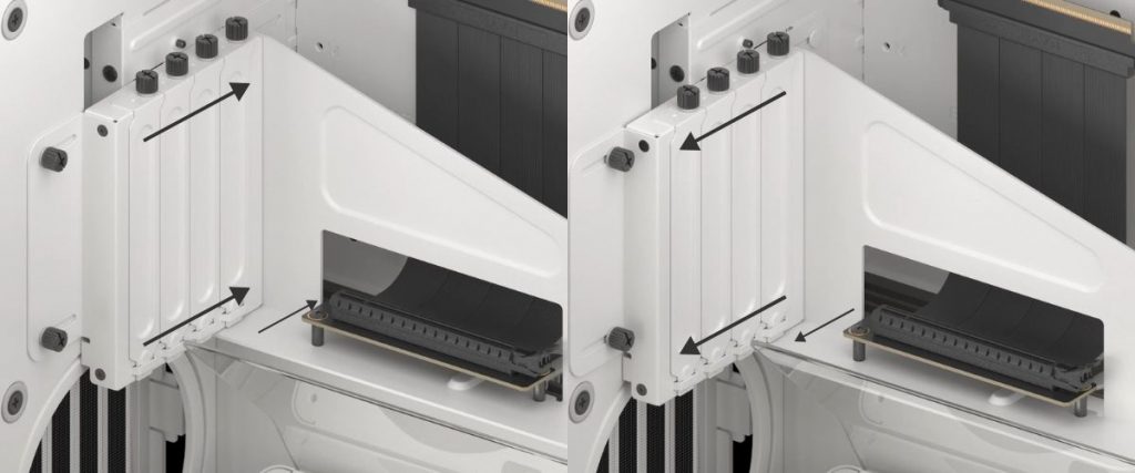 Adjustable VGPU Bracket : VGPU Bracket สำหรับวางการ์ดจอแนวตั้ง สามารถปรับเลื่อนเข้าออกได้ เพื่อให้เหมาะสมกับความหนาของการ์ดจอแต่ละรุ่น และช่วยเพิ่มระยะห่างระหว่างการ์ดจอและกระจกเคส ( VGPU Bracket เฉพาะในรุ่น HS 420 VGPU เท่านั้น )
