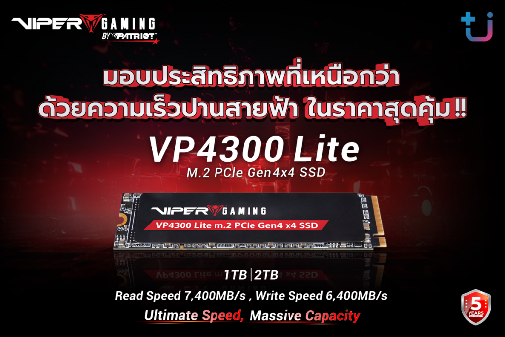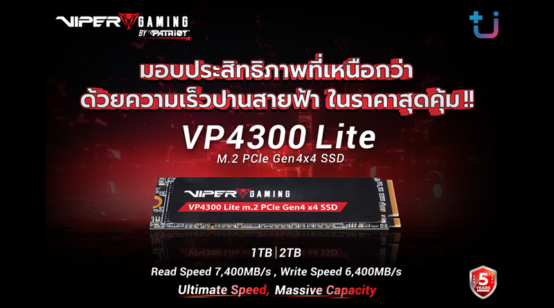 Ascenti เปิดตัวสินค้าใหม่ PATRIOT VP4300 Lite Gaming SSD มอบประสิทธิภาพที่เหนือกว่า ด้วยความเร็วปานสายฟ้า ในราคาสุดคุ้ม