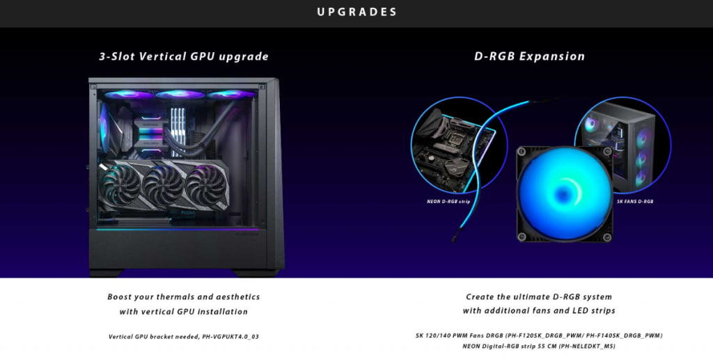 - D-RGB Expansion สามารถออกแบบให้เคสของคุณสวยงามยิ่งขึ้นด้วยพัดลม SK FAN D-RGB และ NEON D-RGB Strip