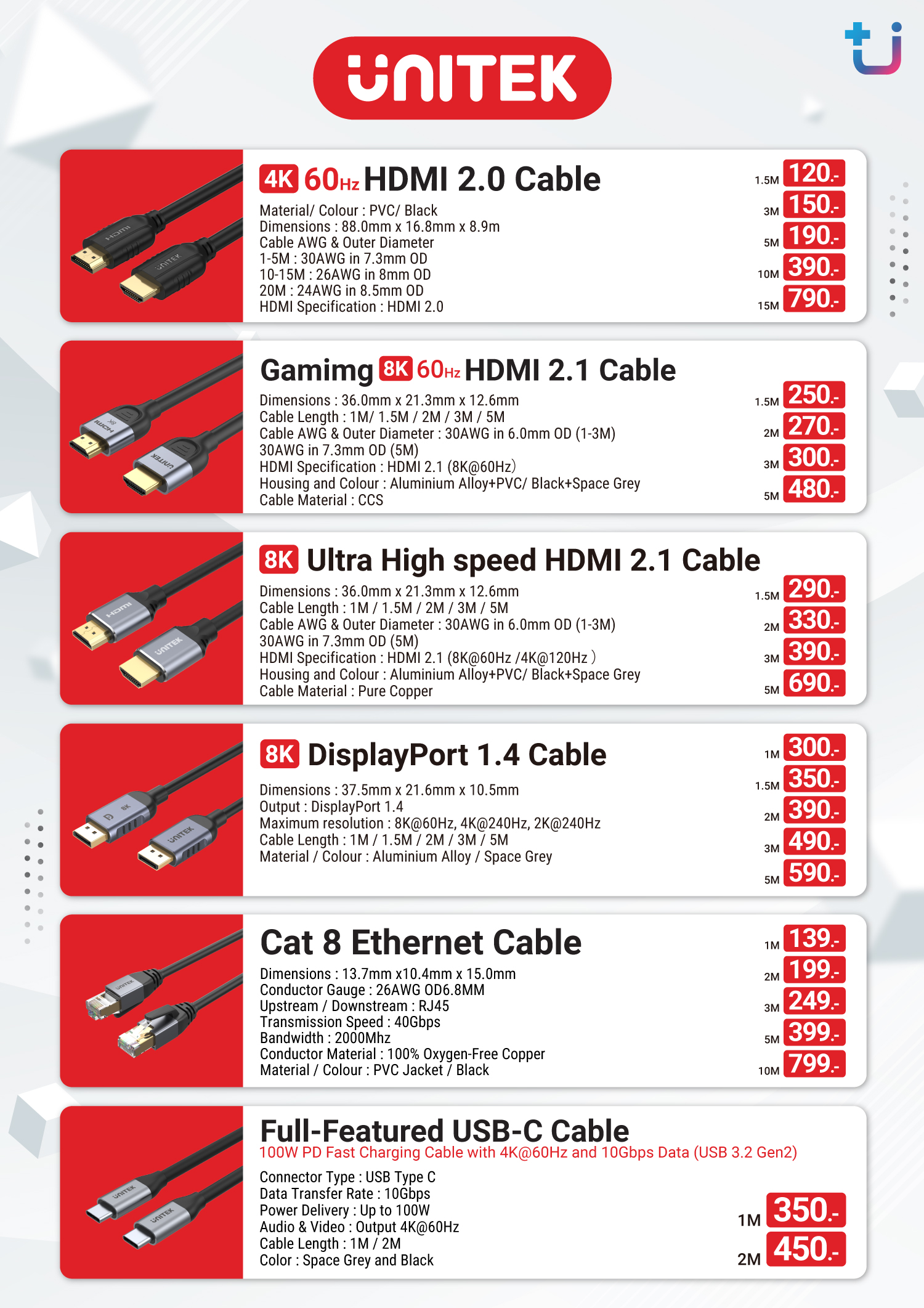UNITEK มุ่งเน้นการพัฒนาผลิตภัณฑ์ให้ใช้งานง่าย พร้อมทั้งการออกแบบที่ทันสมัยและความทนทาน เพื่อมอบประสบการณ์การใช้งานที่ดีที่สุดแก่ลูกค้า นำเสนอผลิตภัณฑ์หลากหลายประเภทที่ตอบโจทย์ทั้งการใช้งานในบ้านและที่ทำงาน เช่น USB Hub เพิ่มจำนวนพอร์ตเชื่อมต่อ พร้อมฟีเจอร์ที่รองรับการถ่ายโอนข้อมูลความเร็วสูง ช่วยให้การทำงานสะดวกขึ้นอย่างเห็นได้ชัด อุปกรณ์จัดเก็บข้อมูล รองรับการถ่ายโอนไฟล์ขนาดใหญ่และสำรองข้อมูลได้อย่างปลอดภัย ด้วยเทคโนโลยีล่าสุดที่เพิ่มความรวดเร็วและความเสถียร อะแดปเตอร์วิดีโอ รองรับการแสดงผลในความละเอียดสูง เหมาะสำหรับการประชุมออนไลน์ งานนำเสนอ และความบันเทิงส่วนตัว สายเคเบิลคุณภาพสูง รองรับการใช้งานกับอุปกรณ์หลากหลายประเภท ทั้งสมาร์ทโฟน แท็บเล็ต คอมพิวเตอร์ และแล็ปท็อป