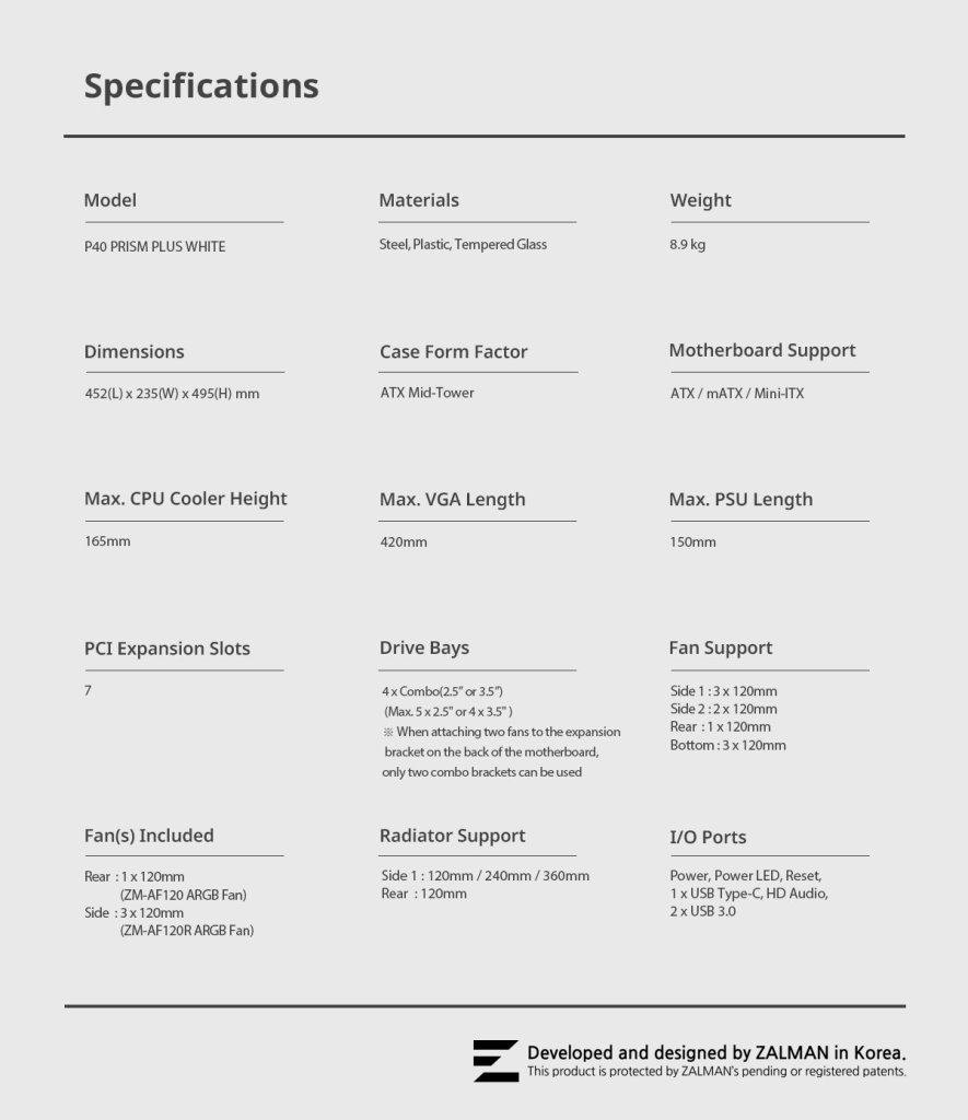 ZALMAN P40 PRISM PLUS มีสีให้เลือก สีดำ / สีขาว