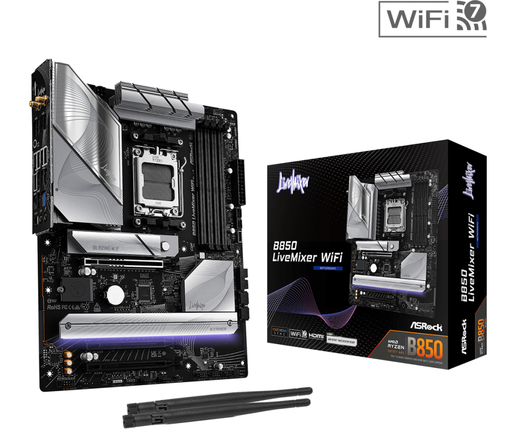 - สามารถดูรายละเอียดเพิ่มเติมของเมนบอร์ดได้ที่ : https://www.asrock.com/mb/AMD/B850%20LiveMixer%20WiFi/index.us.asp