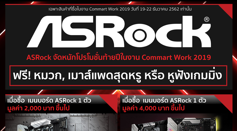 ASRock จัดหนัก โปรโมชั่นส่งท้ายปี ช้อปเมนบอร์ด กราฟิกการ์ด รับฟรี! ของพรีเมียมสุดหรู ในงาน Commart Work 2019