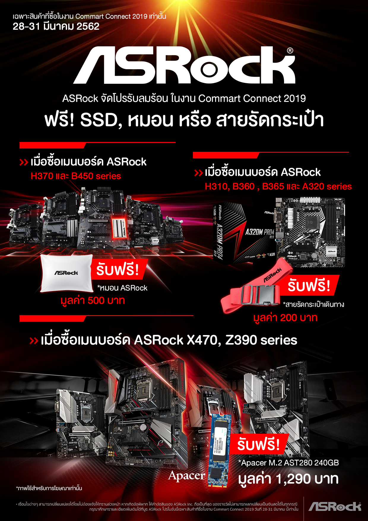พบเมนบอร์ดและกราฟิกการ์ดรุ่นใหม่จาก ASRock ได้ในงาน Commart Work 2019 วันที่ 19-22 ธันวาคม 2562 ที่ ไบเทค บางนา ซื้อเมนบอร์ดคุณภาพและการรับประกันที่มั่นใจได้จาก ASRock
