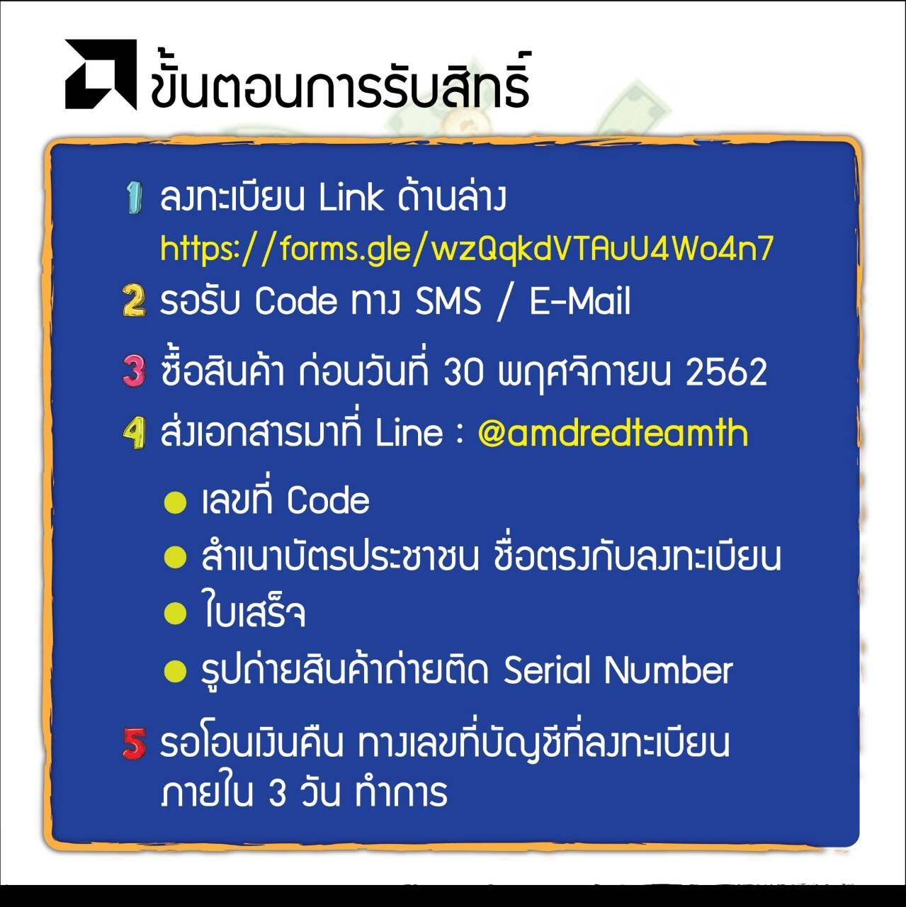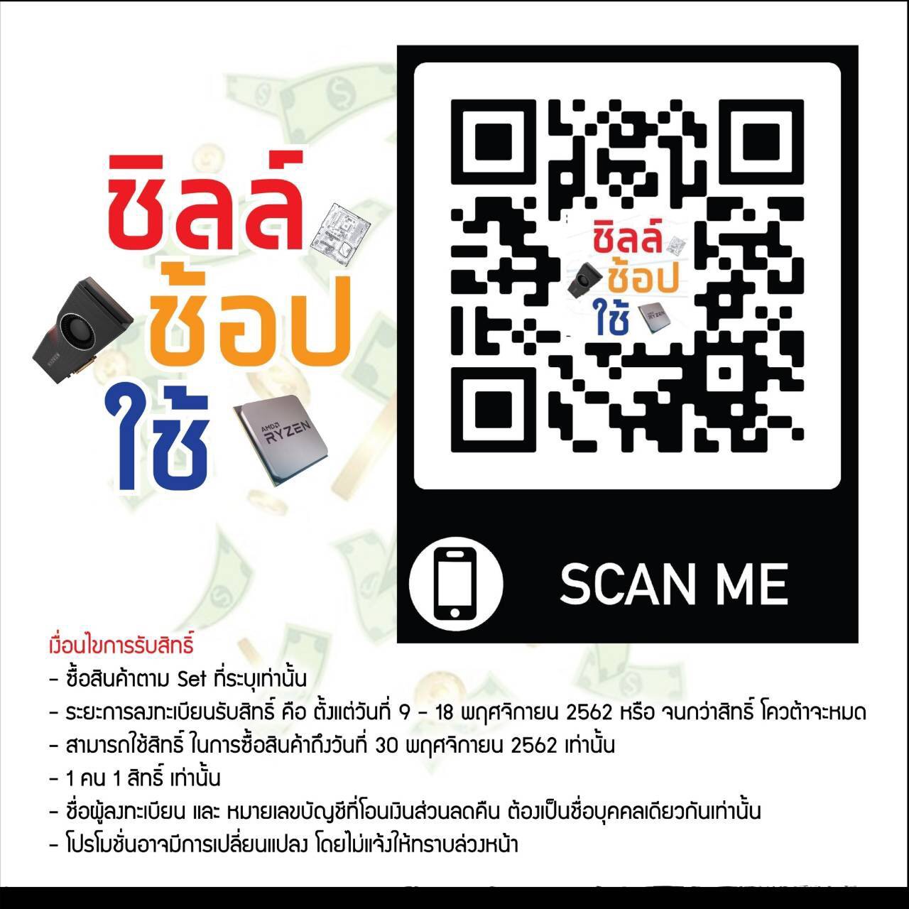 ASRock ชวนคุณมาชิลล์ ช้อป ใช้ รับส่วนลดพิเศษ เมื่อซื้อเมนบอร์ด กราฟิกการ์ดและซีพียู ในกลุ่มผลิตภัณฑ์จาก AMD แค่ลงทะเบียน ก็ลุ้นรับส่วนลดสูงสุด 2,700 บาท ภายในวันที่ 9-18 พฤศจิกายน 2562 นี้ สามารถติดตามรายละเอียดโปรโมชั่นสุดฮอตแบบนี้กันได้เลย ลงทะเบียนกันได้ที่ https://forms.gle/wzQqkdVTAuU4Wo4n7