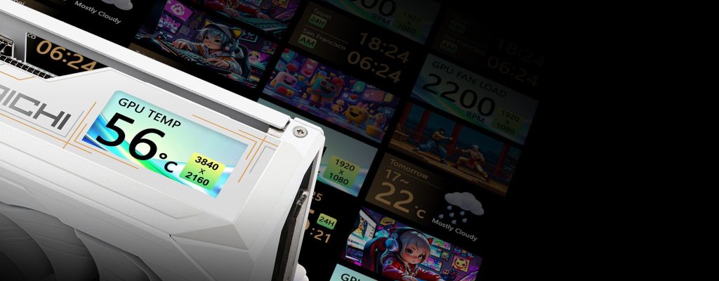 ในแง่ของการใช้งานจริง ตัวการ์ดยังติดตั้ง LCD Information Center ที่สามารถแสดงข้อมูลสถานะหรือองค์ประกอบกราฟิกเพิ่มเติมได้ (รองรับผ่าน Windows 11 และซอฟต์แวร์ ASRock Polychrome) ควบคู่กับระบบไฟ Polychrome SYNC เพื่อการปรับแต่งแสงไฟให้เข้ากับชุดพีซีโดยรวม ขณะที่โครงสร้างภายนอกเสริมด้วย Stylish Metal Backplate เพื่อเพิ่มทั้งความแข็งแรงและภาพลักษณ์ระดับพรีเมียม