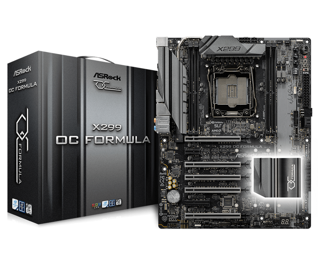 ASROCK X299 OC FORMULA เป็นเมนบอร์ดที่ออกแบบมาเพื่อนัก Overclocker โดยเฉพาะ ซึ่งจุดเด่นคือเลือกใช้ Component คุณภาพสูงในการทำภาคจ่ายไฟและรวมถึงการออกแบบลายวงจรสำหรับส่วนควบคุม DDR4 เพื่อให้มีความสามารถในการ Overclock เพิ่มความเร็วแรมได้มากเป็นพิเศษ และยังรวมถึงการออกแบบ BIOS ในการควบคุมปรับแต่งค่าไฟเลี้ยงและการปรับแต่ง DRAM Timing อย่างละเอียด ตอบสนองได้ทุกความต้องการไม่ว่าจะเป็น CL ต่ำๆ หรือการเน้นลาก Mhz สูงๆ ก็ทำได้ทั้งนั้น