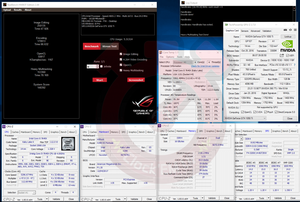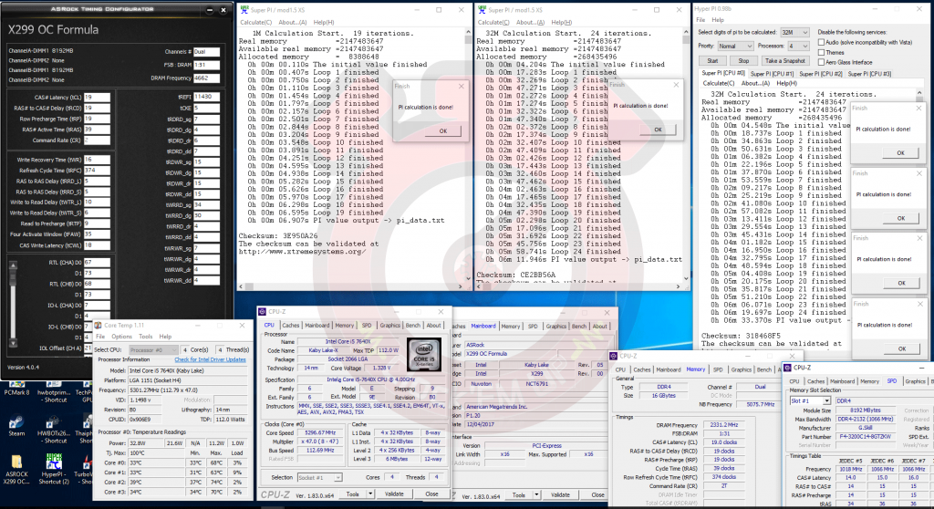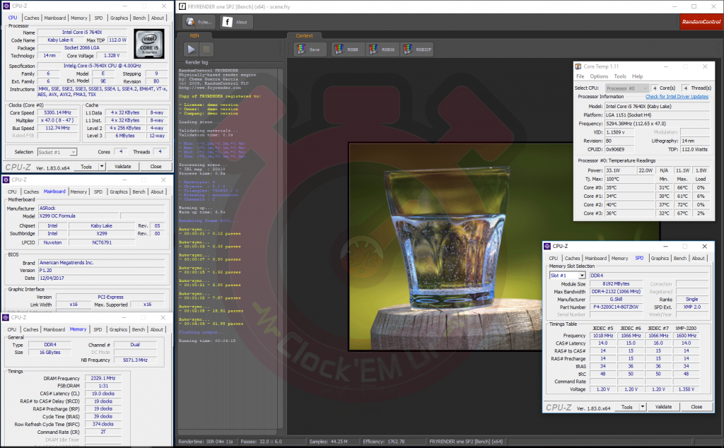 ภาพบรรยากาศในการทดสอบในครั้งนี้ครับ ซึ่งค่า Overclocking ต่างๆ สำหรับการโชว์ Benchmark ในวันนี้จะอยู่ด้านล่างนี้เลยนะครับ ส่วนวันห่อนใครที่ได้ดู Clock’EM UP Live สดกันไปแล้วก็จะเห็นได้เลยว่า ASROCK X299 OC FORMULA นั้นสามารถ Overclock แรม DDR4 ได้เกิน 4600+ แบบหมูๆ เลยก็ว่าได้….