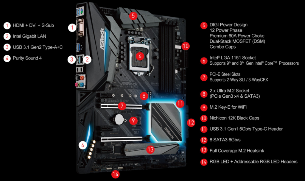 - Supports 9th and 8th Gen Intel® Core™ processors (Socket 1151)
