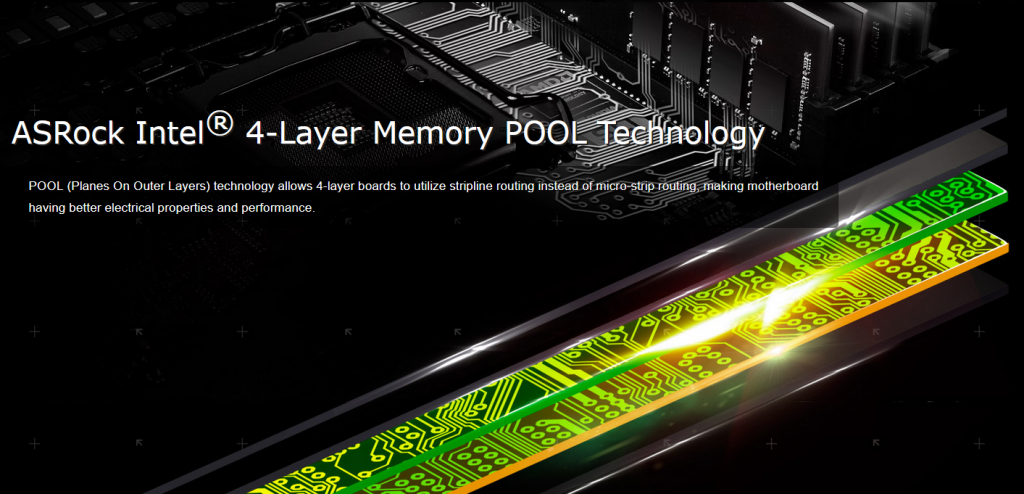ASRock ยังคงใช้เทคโนโลยีในการเชื่อมต่อข้อมูลระหว่างแรม DDR4 ไปยัง CPU Socket ด้วยมาตราฐานจากทาง Intel ที่เรียกว่า Intel 4-Layer Memory Pool Technology ที่มีการออกแบบช่องทางการส่งข้อมูลเฉพาะแรมอย่างเดียวก็ 4-Layer แล้วครับ และวันนี้เราก็จะมาพิสูจน์กันว่าการ Overclock แรม DDR4 จำนวน 4 แถวบนเมนบอร์ดรุ่นนี้ให้เกินระดับ DDR4-4000Mhz+ นั้นจะทำได้ยาก/ง่าย อย่างไร ^^”