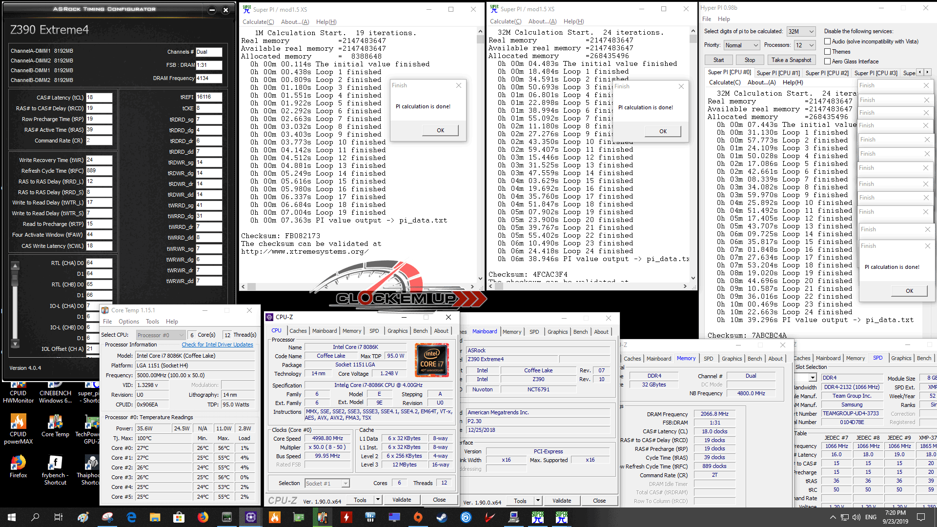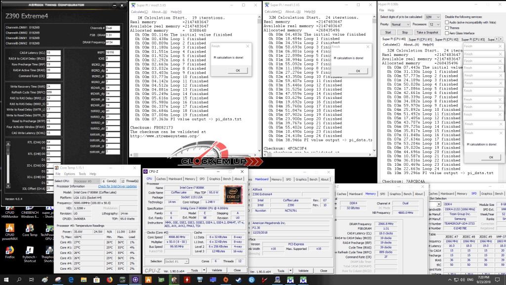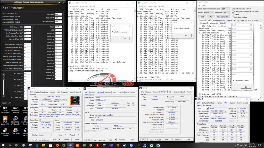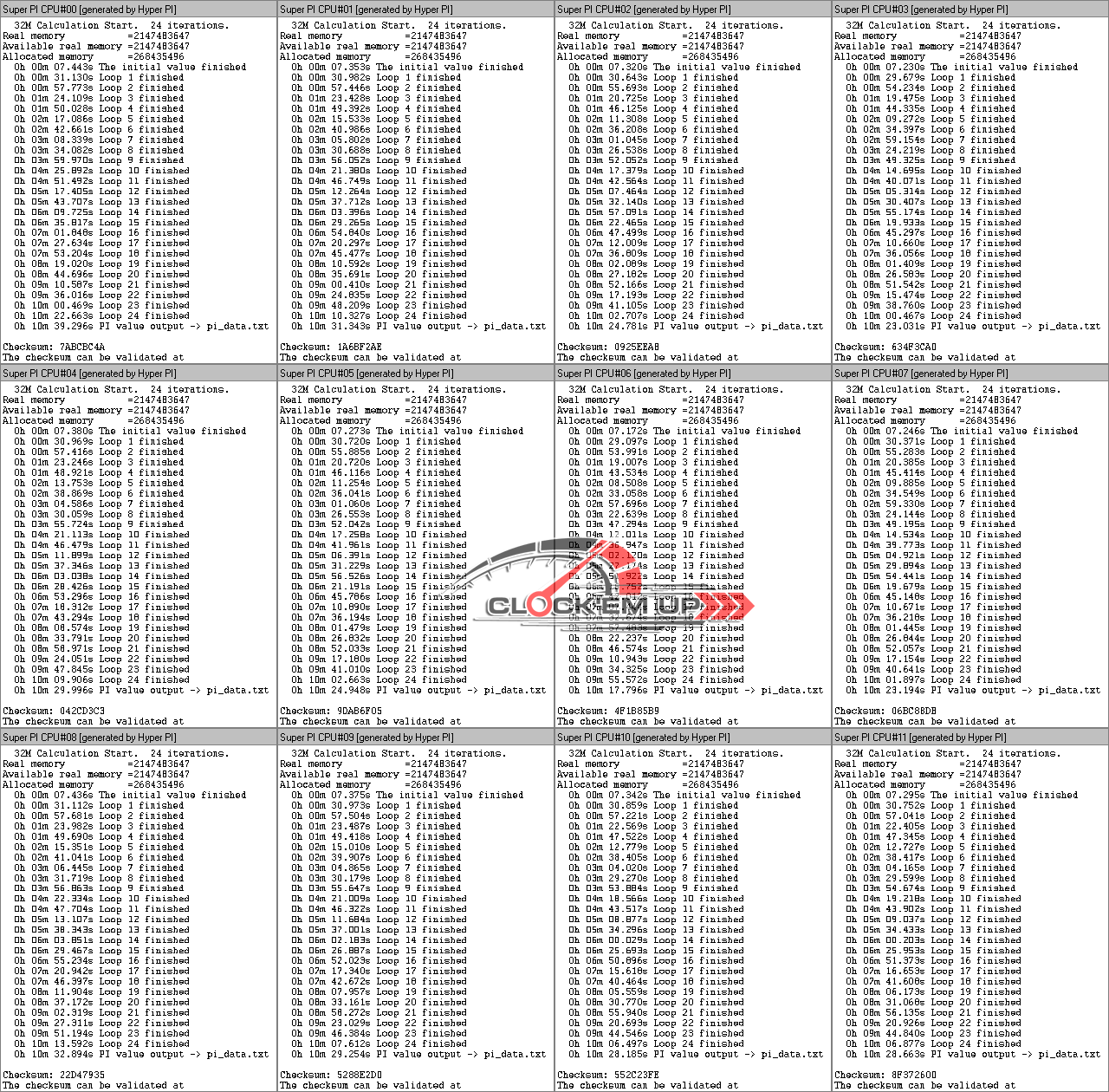 สำหรับผลการทดสอบ Super Pi32GB แบบ Multi-Threads 12 หัวให้ได้ไกลที่สุดกับแรมความเร็ว DDR4-4133Mhz CL18-19-19-39 2T 1.45V Sub-Timing ต้อง Auto ถึงจะมาได้แบบง่ายๆ ครับสำหรับการต่อใช้งานแบบ 4xDIMM 32GB กับ T-Force XTREEM 3733+4800 A2 PCB