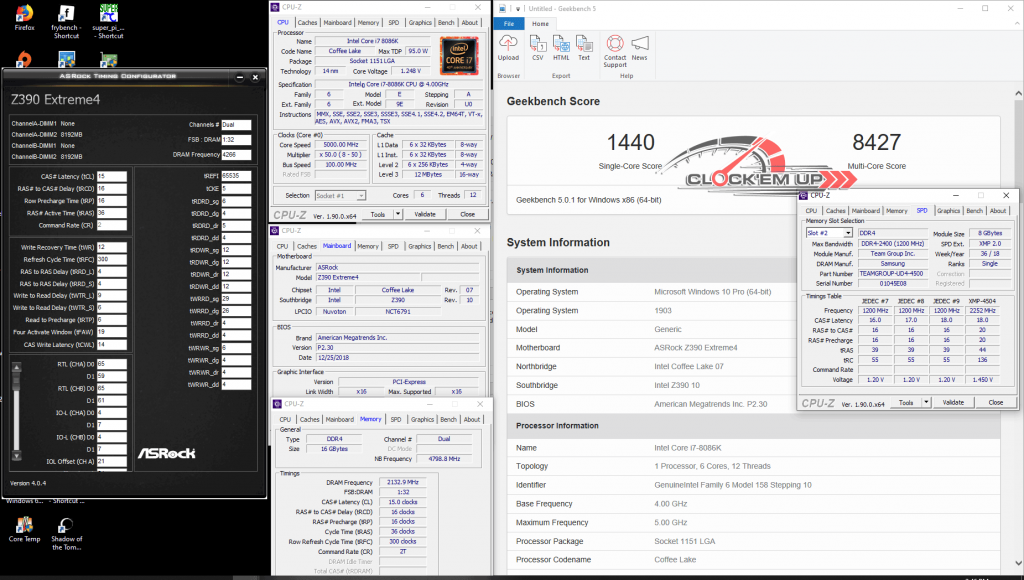 และจับลองลากต่อแบบสุดแบบ 2xDIMM ด้วยแรม PCB เก่า A1 อย่าง T-FORCE XTREEM DDR4-4500Mhz CL18 คู่นี้ก็พบว่าเหมือน ASRock จะยังชอบแรม PCB เก่าอยู่นะครับ ซึ่งมันสามารถ OC ไปได้ไกลเกินระดับ DDR4-4133Mhz ถึง DDR4-4266Mhz ได้ง่ายกว่าแรม A2 PCB แบบใหม่เยอะเลย แต่ทั้งนี้และทั้งนั้นผมลองลากให้ทะลุ 4300Mhz+ ก็พบว่า ยังไม่เคยบูทติดเลยกับแรมที่มีอยู่ ฮ่าๆ…