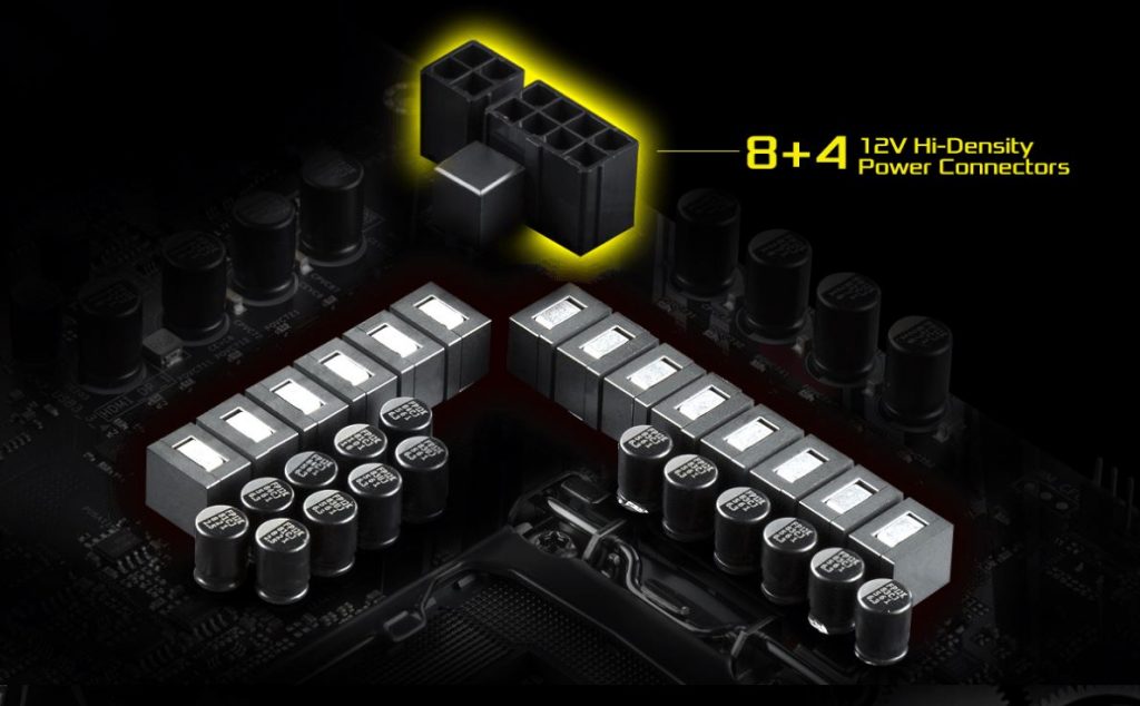 ภาคจ่ายไฟขนาดใหญ่ 12-phase ให้การจ่ายไฟได้อย่างต่อเนื่องลื่นไหลสำหรับซีพียู เพิ่มประสิทธิภาพให้กับการโอเวอร์คล็อกได้ดี รวมถึงมีอุณหภูมิที่ต่ำสำหรับรองรับการใช้งานอันยาวนานของเกมเมอร์