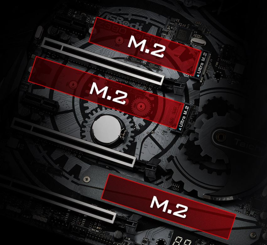 เมนบอร์ดรุ่นนี้สนับสนุนโมดูล SSD บนพอร์ต Ultra M.2 ได้ถึง 3 อุปกรณ์ด้วยกัน บนมาตรฐาน PCIe Gen3 x4 นอกจากนี้ยังมาพร้อมฮีตซิงก์ที่ครอบคลุมโมดูล M.2 ได้เต็ม เพื่อช่วยในการระบายความร้อนขณะใช้งาน