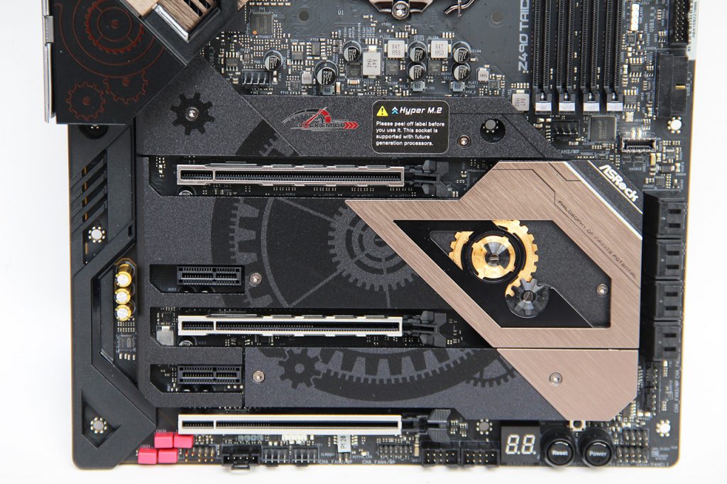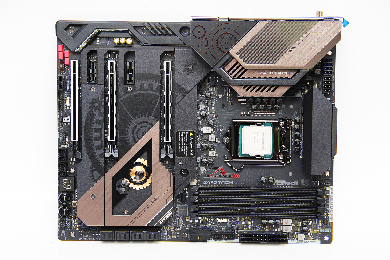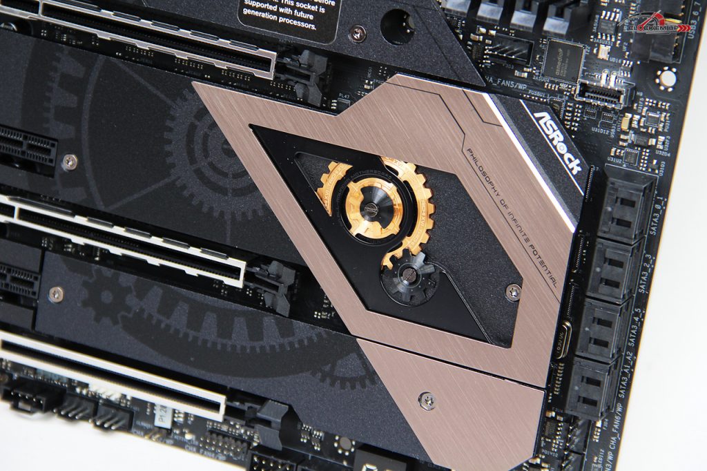 บริเวณ Heatsink Intel Z490 PCH นั้นจะมาพร้อมกับรูปฟันเพืองในแบบฉบับของ Taichi Series