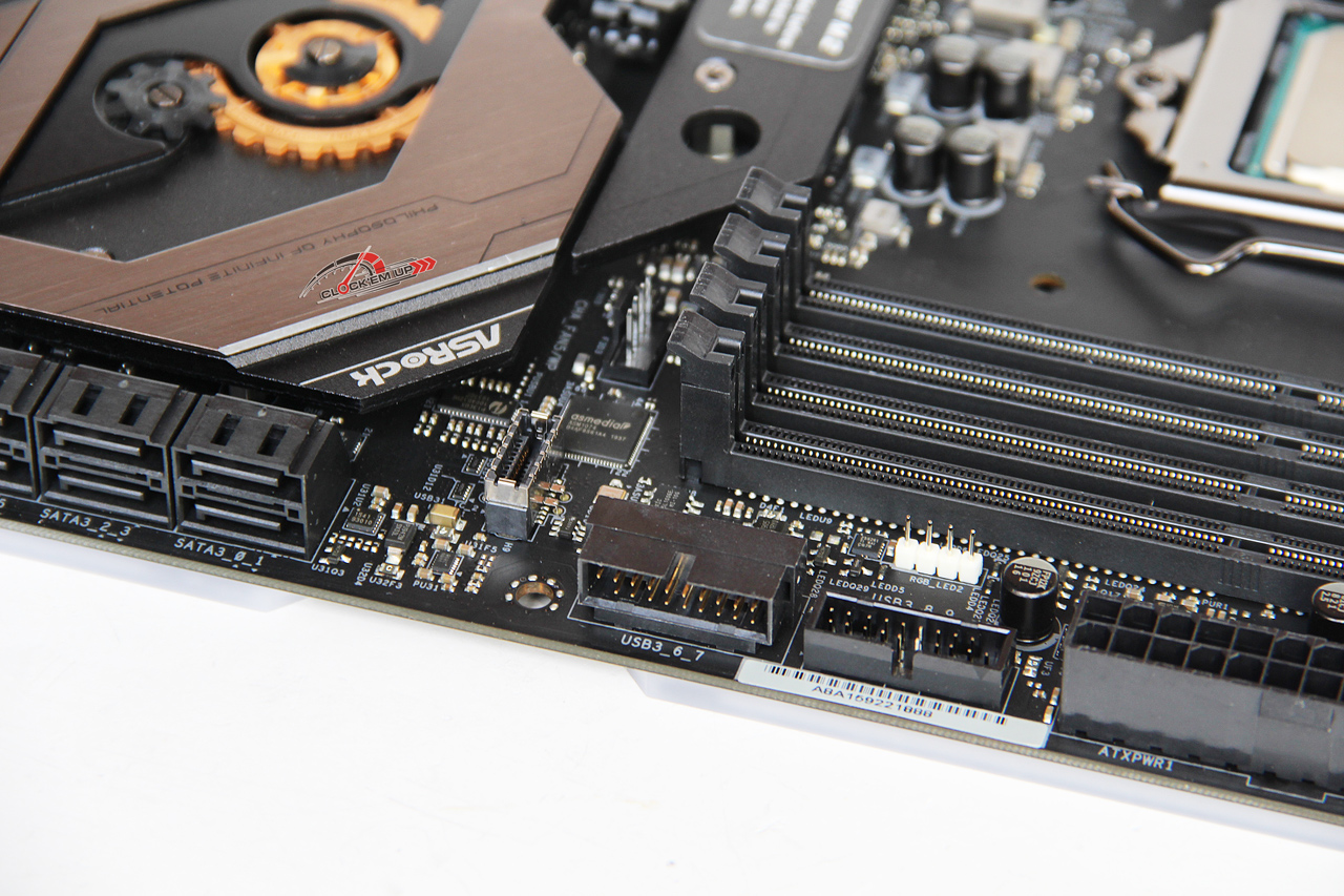 บริเวณช่องเสียบ USB3.0 Front Panel จำนวน 2 ช่องและ USB3.1 Type-C Front Panel อีก 1 ช่อง และจุดนี้ยังมีช่องเสียบ 12V 4-Pin RGB Header ให้ด้วย