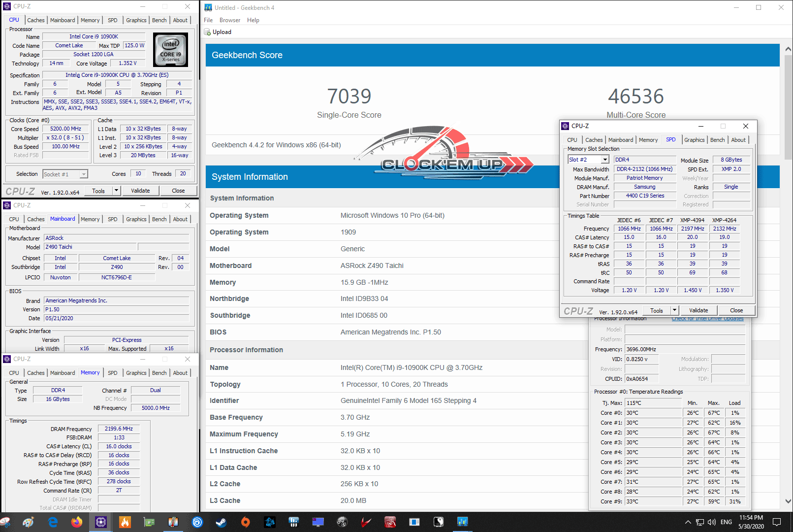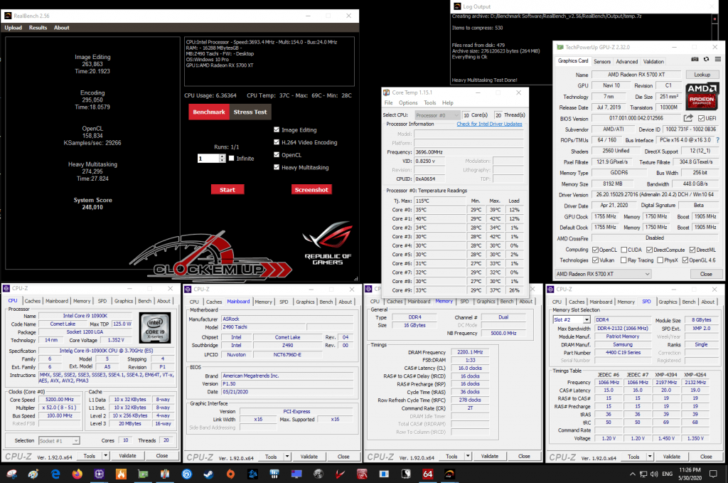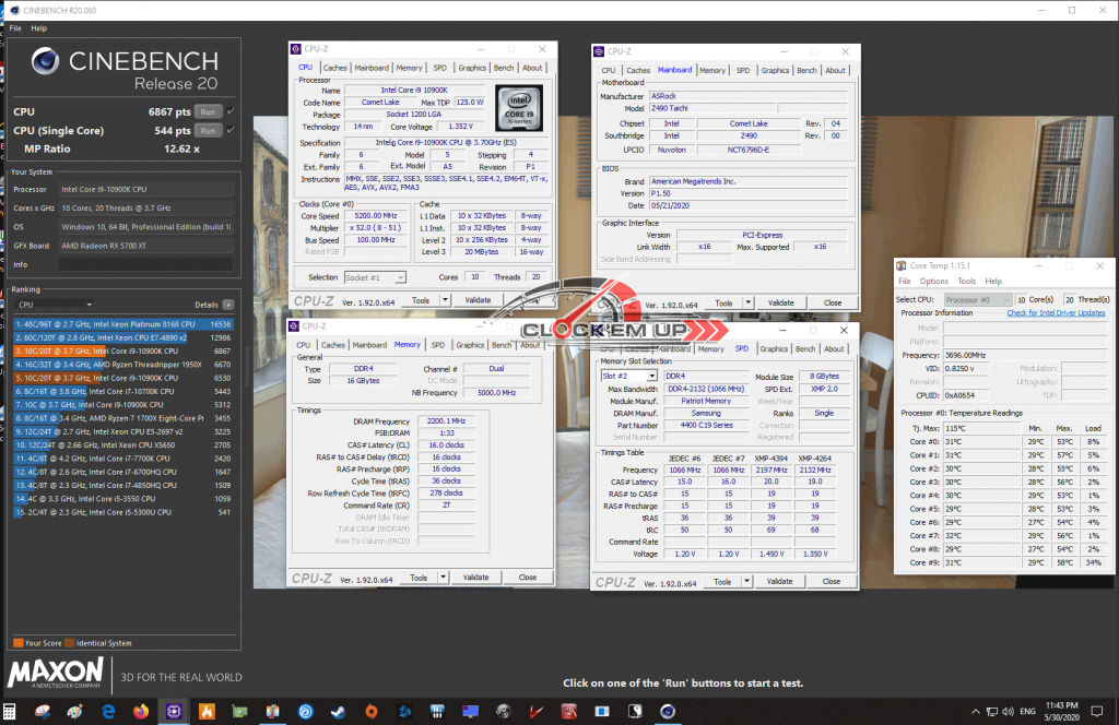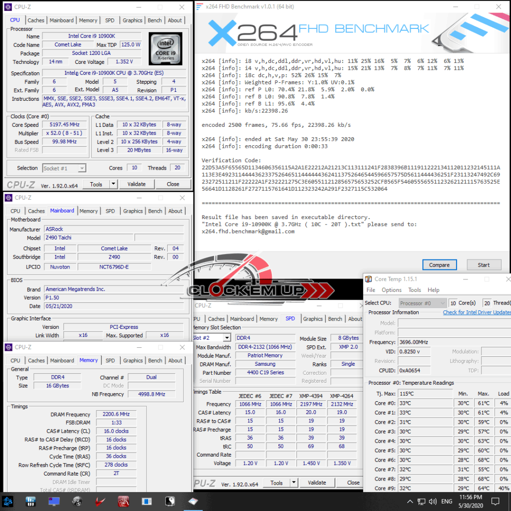 และด้านล่างนี้ก็จะเป็นผลการ Overclock และความแรงของ CPU Intel Core i9-10900K @5.2Ghz/5.0Ghz + DDR4-4400Mhz CL16-16-16-36 1.63V 2T + Very Tight Sub-Timing ที่สามารถทดสอบ Benchmark ต่างๆ ผ่านได้อย่างมีเสถียรภาพดีระดับหนึ่ง ซึ่งต้องบอกเลยว่า แรงแบบไม่ธรรมดาจริงๆ สำหรับ ASRock Z490 Taichi + แรม Samsung B-Die ดีๆ สักคู่หนึ่ง ^^”