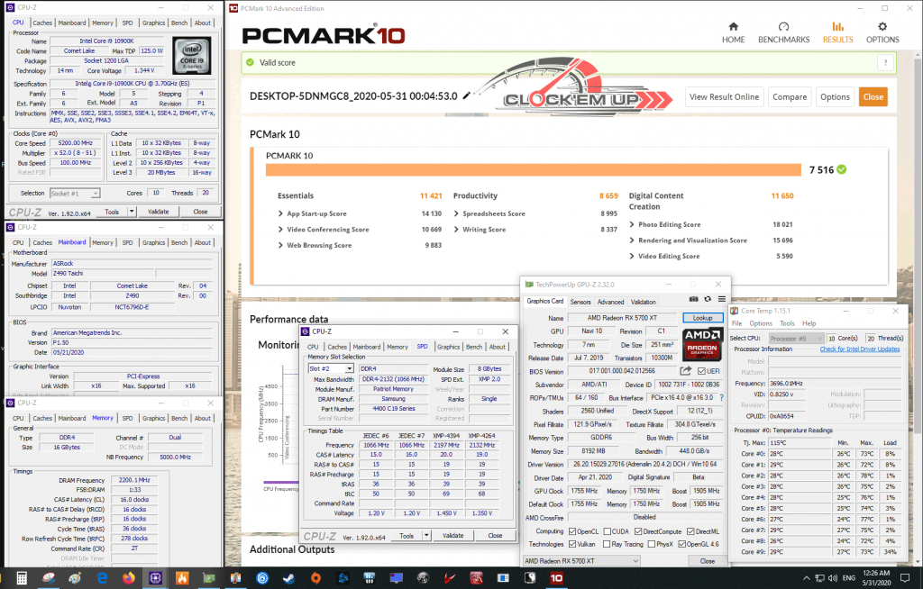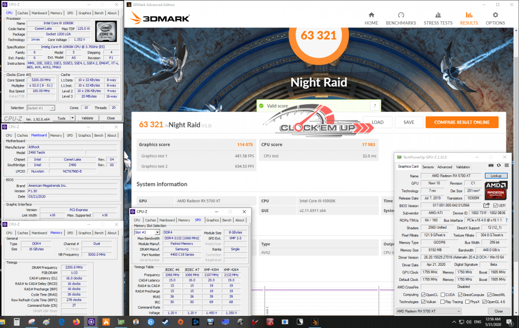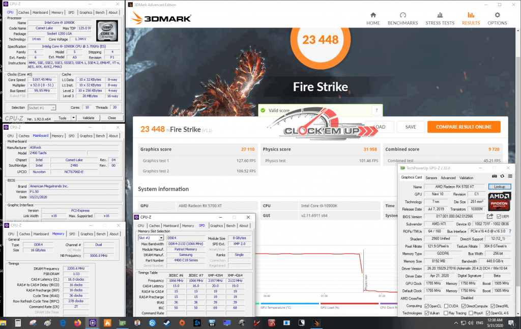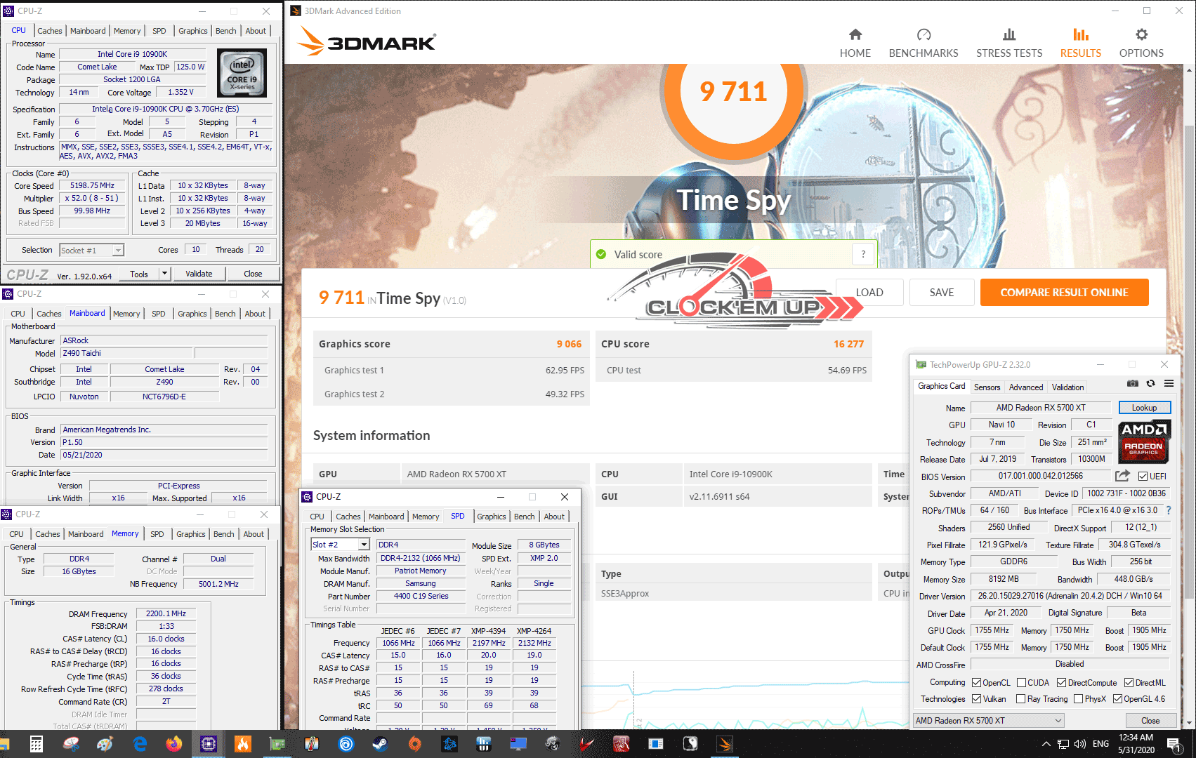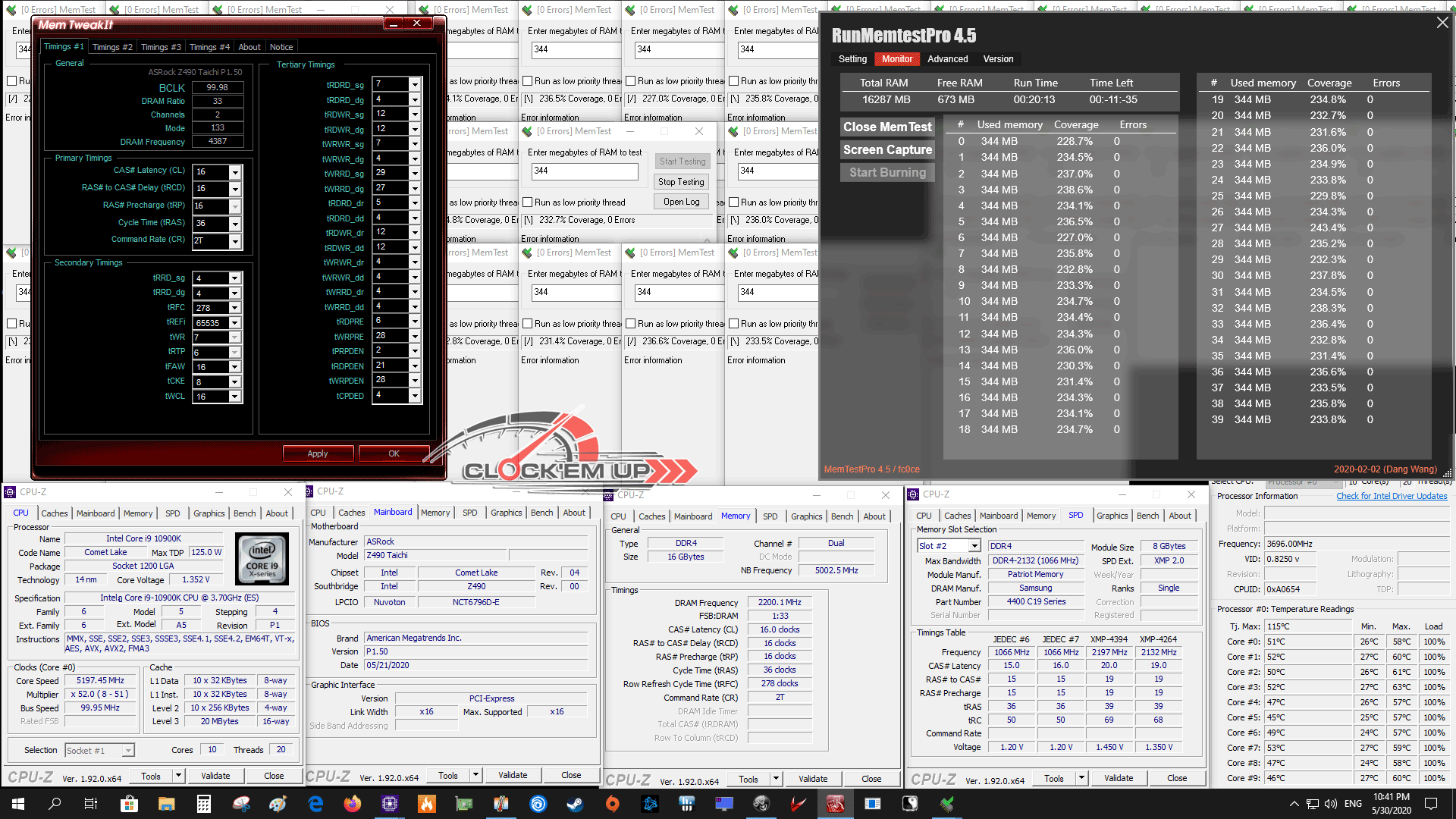 และด้านล่างนี้ก็จะเป็นผลการ Overclock และความแรงของ CPU Intel Core i9-10900K @5.2Ghz/5.0Ghz + DDR4-4400Mhz CL16-16-16-36 1.63V 2T + Very Tight Sub-Timing ที่สามารถทดสอบ Benchmark ต่างๆ ผ่านได้อย่างมีเสถียรภาพดีระดับหนึ่ง ซึ่งต้องบอกเลยว่า แรงแบบไม่ธรรมดาจริงๆ สำหรับ ASRock Z490 Taichi + แรม Samsung B-Die ดีๆ สักคู่หนึ่ง ^^”