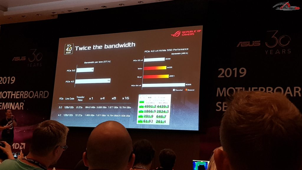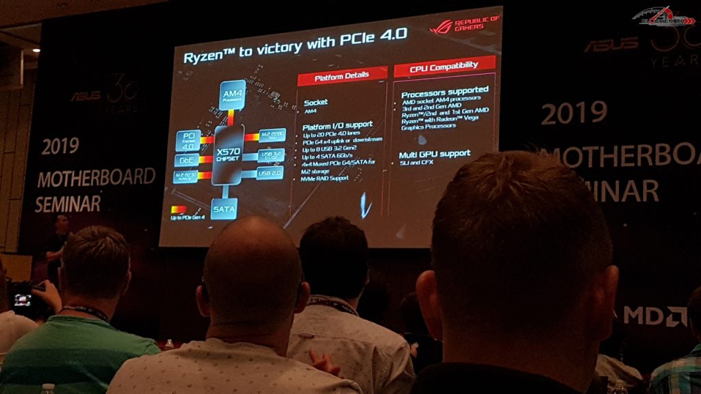 เอาล่ะครับเข้าเนื้อหากันเลยดีกว่า กับการมาของเมนบอร์ดชิปเซ็ต AMD X570 Chipset ที่มาแรงมากในงาน Computex 2019 ครั้งนี้ โดยจะบอกว่าเป็น High Light เลยก็ว่าได้ครับ เพราะกระแสของ AMD ทั้งในส่วนของ CPU RYZEN 3 นั้นก็มาแรงมากด้วยเช่นกัน เลยทำให้ Computex ปีนี้มีแต่การพูดถึงเมนบอร์ด AMD X570 มากที่สุดเลยก็ว่าได้ครับ….. และอันดับแรกเลยที่สำคัญคือการก้าวสู่ PCIe 4.0 (64Gbps) เป็นครั้งแรกของ AMD ในตลาด Desktop