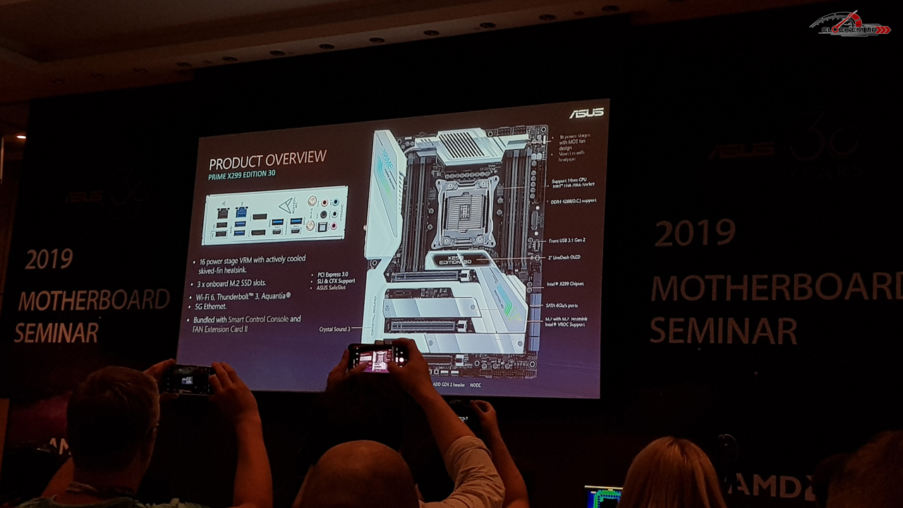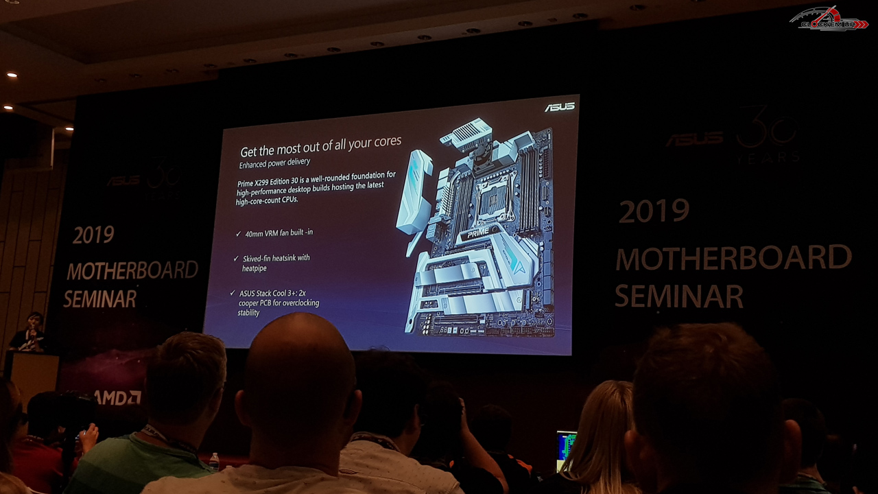 เมนบอร์ดฝั่ง Intel นั้นก็จะมีที่เป็น High Light เพียงตัวเดียวเลยก็คือ ASUS Prime X299 Edition 30 ที่ทำออกมาใหม่เพื่อเฉลิมฉลองครบรอบ 30 ปีของ ASUS ซึ่งก็ได้จัดการรื้อเมนบอร์ด Prime X299 ใหม่ทั้งหมด ไม่ว่าจะเป็นภาคจ่ายไฟที่หนึบขึ้นกว่าเดิม เย็นกว่าเดิม เพื่อรองรับ CPU รุ่นใหม่ที่มี Cores มากขึ้น