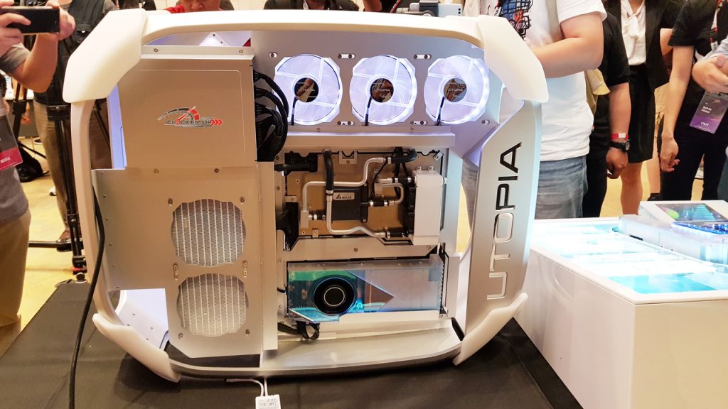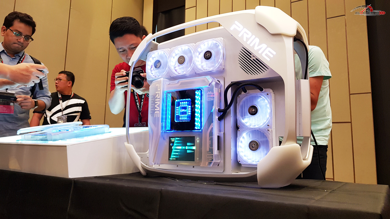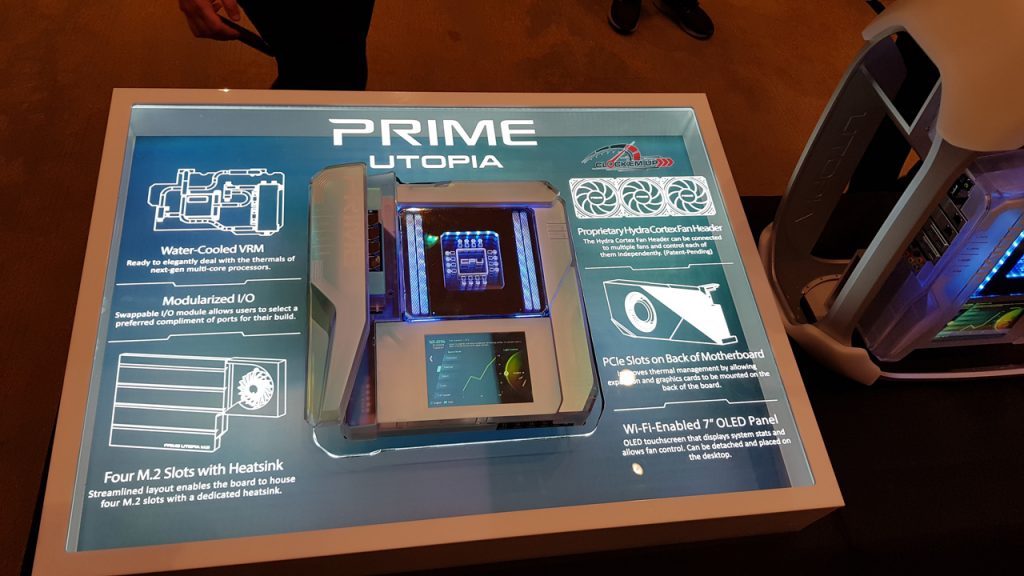 นี่คือจุดที่จัดแสดงเจ้า ASUS PRIME UTOPIA เครื่อง PC สำเร็จรูปจากทาง ASUS ในอนาคต จัดเต็มทุกด้านตั้งแต่การออกแบบตัว PC Case และชุดระบายความร้อน