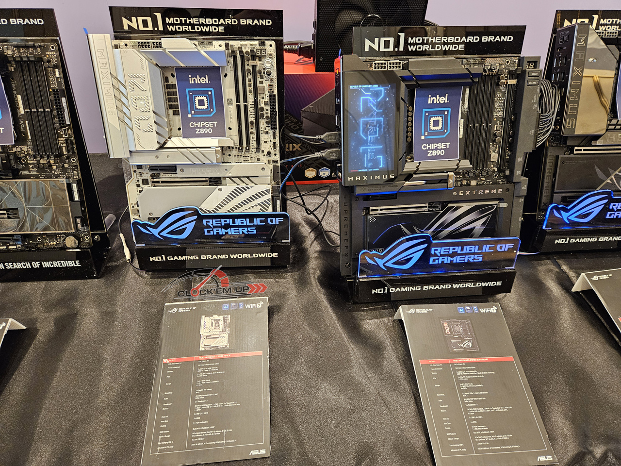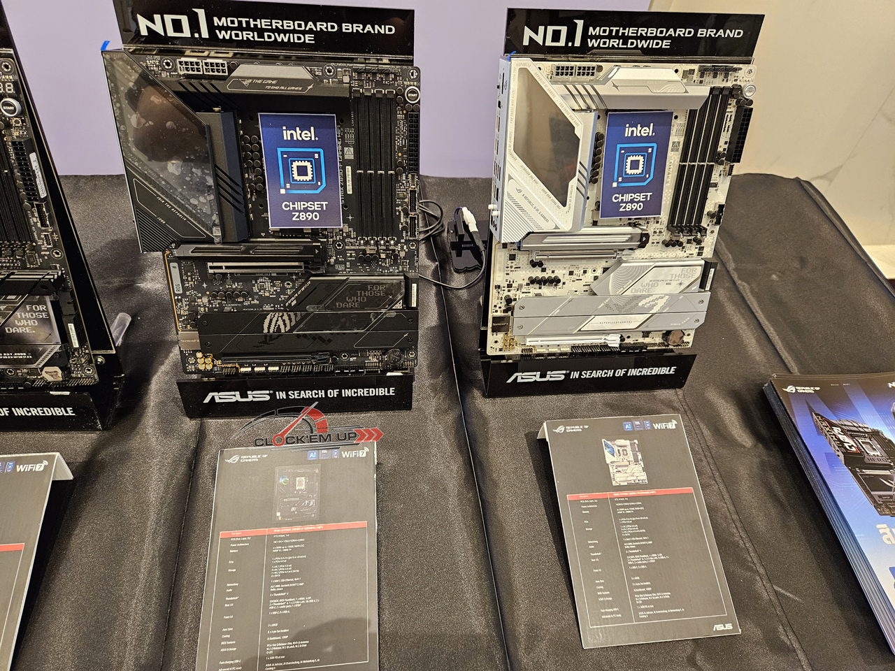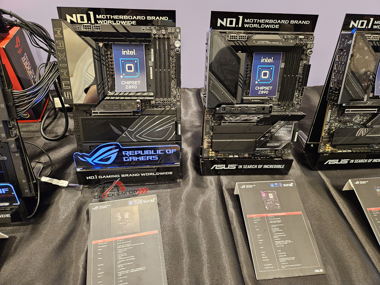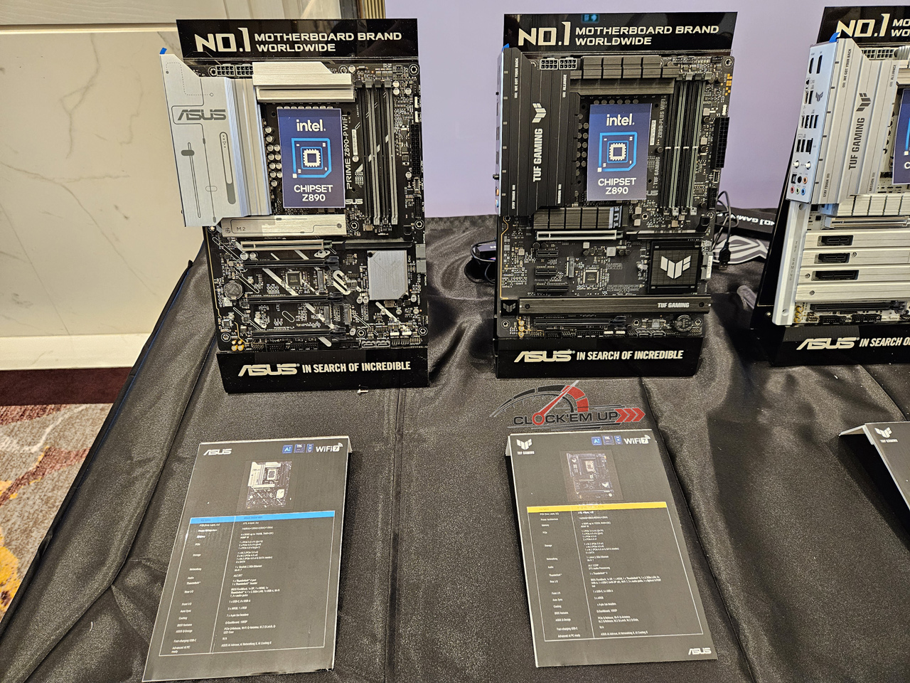 ที่เห็นอยู่นี้คือกองทัพเมนบอร์ด ASUS Z890 SERIES ที่ทาง ASUS ได้นำมาจัดแสดงให้กับเหล่าสื่อมวลชนและเหล่าตัวแทนร้านค้าได้ชมกัน โดยตัวในภาพคือรุ่น ASUS PRIME Z890-P WIFI และ TUF GAMING Z890 PLUS WIFI